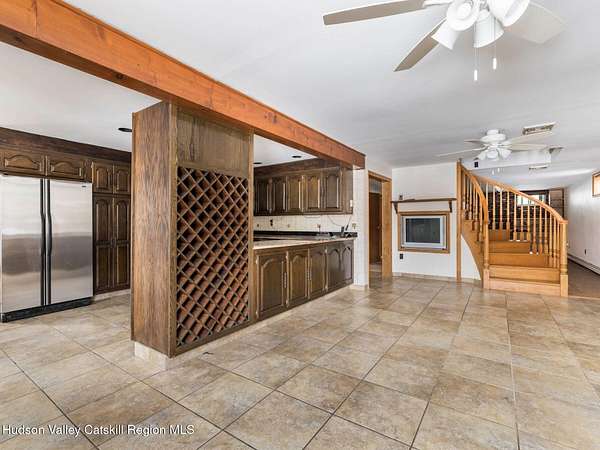 Escape to serenity, nestled along the Wallkill River. Set in a peaceful, scenic location, the property offers ample land to bring all your outdoor toys, plus a large garage with plenty of space to store them. Enjoy the outdoors year-round with opportunities to fish, garden, and relax by the river right from your own backyard. This Raised Ranch is full of surprises! It has a walk-out basement that offers a large eat-in kitchen with ample cabinetry, Granite counter tops and Stainless Steel Appliances. It's an open concept that takes you from the kitchen to the dining room. Just past the staircase into the living room is a brick fireplace. This is the perfect space to host all your holidays! Take the stairs up to three bedrooms and a full bathroom. The fully finished ground level offers incredible flexibility for guests, a home office, or a media room. Large sliding doors open to seamlessly connecting the indoor and outdoor spaces. Ideally located between Wallkill and New Paltz, and just minutes from the Shawangunk Mountains (the Gunks), this home is perfectly suited for a weekend getaway or full-time living. Whether you're seeking adventure, tranquility, or a blend of both, this riverside retreat delivers a rare combination of nature, convenience, and lifestyle.