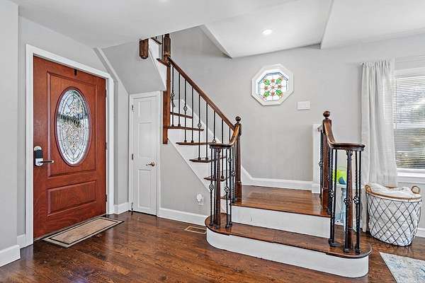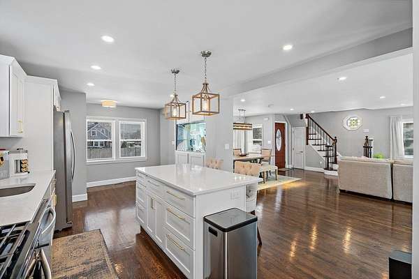 Tired of cookie-cutter homes? Discover this unique luxury custom 4-bed/3-bath house, engineered for comfort, luxury, function & durability in 2021. Features include imported Canadian hardwood floors and 100% plaster throughout. Zoned for 2-family use, it merges two buildings.Front: Open-concept kitchen, pantry, dining & living rooms. Spacious hallway connects to office/bedroom (right) & bath/closet (left), leading to rear with dramatic 2-story vaulted ceilings, overlook & chandelier.Upstairs: 3 spacious bedrooms, each with direct bath access (two via Jack-and-Jill). Backyard perks: Massive (disconnected) solar panels, 1-car garage, hot tub & 3+ decks.Open houses start 2/28. Truly one of a kind!
