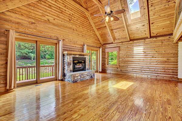Est $3,704/moWelcome to this charming log-style home on 5.46 private acres in Salem with mountain views and peaceful surroundings! This property offers gas-log fireplaces in the great room and den as well as an open kitchen that connects to a generous living space. Covered front and rear porches, a large deck, and garden areas offer great outdoor living. The full walkout basement provides extra flexibility and offers a 2 car garage. Outside the barn has two horse stalls and could be used for other animals, or would make a great workshop! This house is ideal for buyers seeking rustic charm with modern comfort and room to spread out, all within convenient reach of Roanoke, Salem, and Blacksburg.