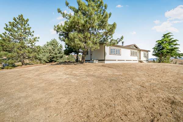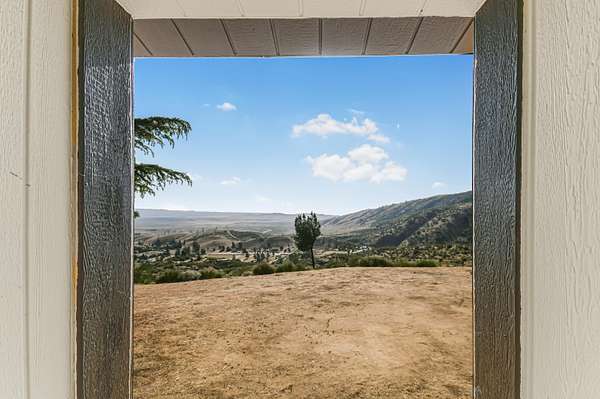 Freshly painted inside and out, this beautifully updated home welcomes you with crisp new colors that perfectly complement its breathtaking setting. Step into the fully remodeled kitchen, where brand-new cabinets, countertops, stainless steel appliances, sink, and fixtures offer both style and functionality. The dine-in kitchen is framed by an abundance of windows, flooding the space with natural light and showcasing the incredible panoramic views that surround the entire home. Brand new vinyl plank flooring runs through all common areas and bathrooms, while soft new carpet adds warmth and comfort to each of the spacious bedrooms. Updated light fixtures and new faucets, toilets, and showerheads in the bathrooms ensure a modern, move-in ready experience. The home also features a cozy wood-burning fireplace in the living area, an indoor laundry space, and energy-efficient dual-pane vinyl windows throughout. Outside, the lot around the house has been cleared of brush and weeds, making way for potential landscaping or expansion. Situated on over 5 acres and serviced by a private water company, this property includes a 20-foot container for additional storage and offers unmatched privacy and VIEWS from every angle--truly, it's hard to find better. The wide-open backyard is a blank canvas, ideal for creating your dream outdoor space. All of this is located in a quiet, peaceful setting with endless potential. This is a rare offering--come see the property and experience the views for yourself!
