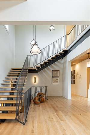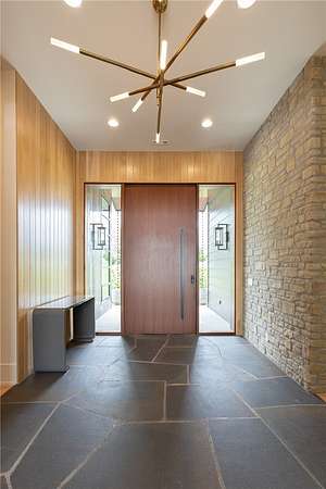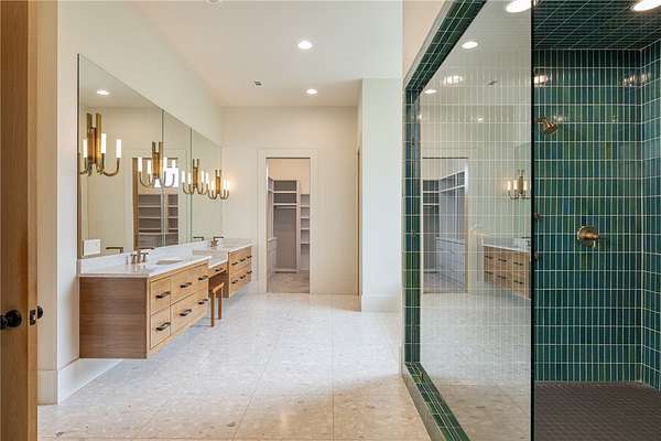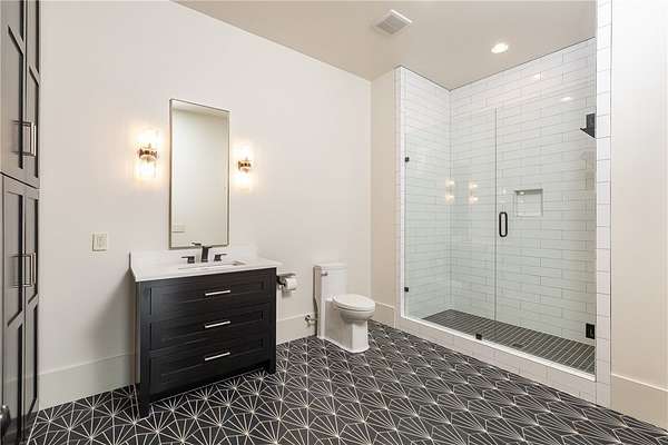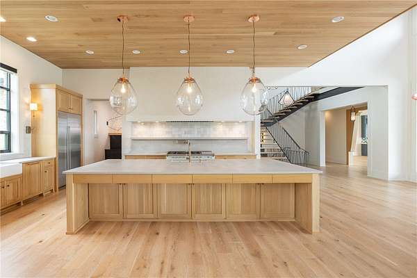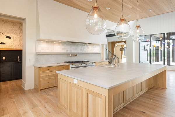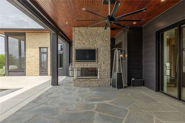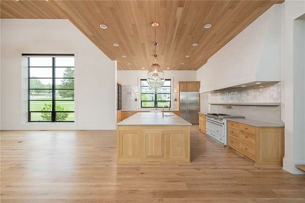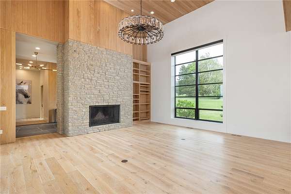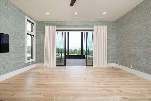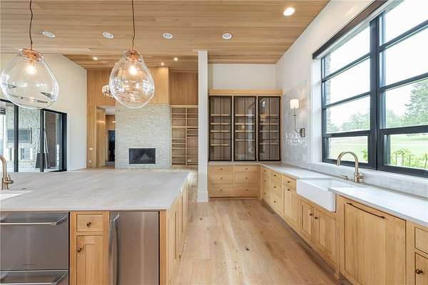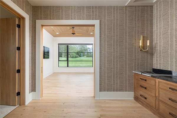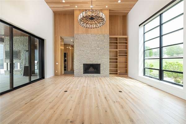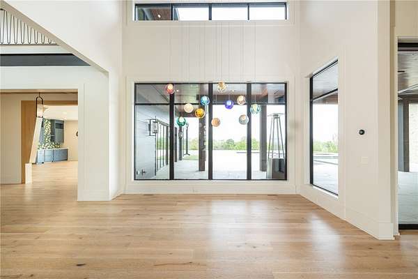 This stunning custom-built estate in East Fayetteville offers a rare chance to own a like-new home without the wait. Meticulously maintained & move-in ready, it sits on 5 serene acres with a private pond. The 13,000+ sq ft residence features 5 bedrooms, 5 full baths, and 1 half bath. Exceptional craftsmanship is evident in white oak floors, marble finishes, soaring ceilings, & abundant natural light. The chef's kitchen includes a Lacanche range, triple dishwashers, & premium appliances, opening to a grand living area with retractable glass doors for seamless indoor-outdoor living. Highlights include a two-story office, luxurious primary suite with screened porch & yoga room, plus a den, solarium, theater, & basement bar. Outdoor features include a beach-entry pool, fire pit, pickleball court, & heated patios. A 6-car garage offers an EV charger, car lift, & wash bay. Solar power completes this private luxury. Recently sold & never occupied due to an unexpected relocation.