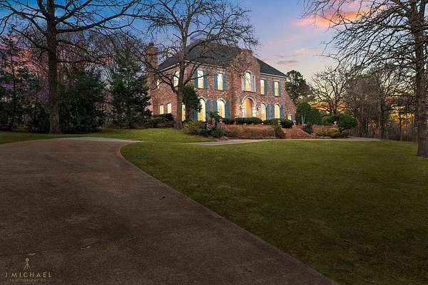 An exceptional offering within the established Nob Hill subdivision. Timeless elegance meets estate living in this impressive 3-bedroom, 3-bath residence offering 3,456 sq ft of refined living space on just over 2 private acres. Inspired by classic architectural design, the stately brick exterior and symmetrical facade create a commanding presence.