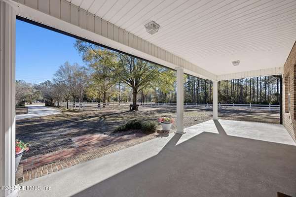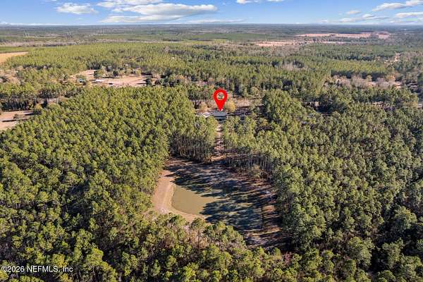 Welcome to your private country retreat. This custom-built, solid brick two-story home sits on 8 peaceful acres and offers timeless charm, privacy, and endless possibilities. Enter through white fencing and follow the paved, crepe-myrtle-lined driveway to a large front porch that invites you inside.The interior features soaring ceilings, abundant natural light, and an open floor plan ideal for entertaining. A beautiful brick wood-burning fireplace anchors the gathering room, creating a warm and welcoming space. The kitchen flows seamlessly into the living areas, with a laundry room and sink conveniently located just off the kitchen.The first-floor primary suite is a true retreat, complete with separate French door entry onto the screened porch overlooking the property. The suite includes a spacious bath with separate soaking tub and shower. Upstairs offers a private bedroom and bath guest suite, plus a large open area perfect for entertaining, guests, or easily converting into one or two additional bedrooms. The property features a 30' x 40' Red Iron steel building with two roll-up doors, fully insulated and equipped with a remote-control door-ideal for a workshop, hobby space, gatherings, or storing boats, RVs, and equipment. A private pond, mature trees, and open acreage make this a nature lover's dream.Zoned OR with no HOA, this meticulously maintained home gives the feel of country living, while remaining conveniently close to Callahan, downtown Hilliard, Yulee or Jacksonville's River City. Enjoy shopping in historic downtown Fernandina or spend the day at the beach. Whether you're looking for a lifelong homestead or a private escape, this property offers space, privacy and flexibility to make it your own.