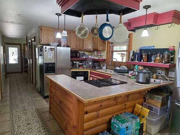 Enjoy the perfect blend of country living and convenience with this 4-bedroom, 2-bath home situated just 5 miles outside of Sallisaw, Oklahoma. Resting on 28.27 acres within the highly sought-after Sallisaw School District, this property offers space, comfort, and an ideal location close to schools, shopping, and town amenities. This property offers two dwelling residential home. The small house is perfect for your in-law or served as a rental income. The home welcomes you with a spacious yard shaded by mature trees, perfect for gardening, outdoor gatherings, or simply relaxing. Inside, recent updates provide comfort and peace of mind, including a full electrical rewire in 2021, new insulation, fresh paint, updated trim, and a remodeled laundry room. The living area features a large open area for cozy winter nights, while cedar accent walls add rustic charm throughout. The master suite is a retreat of its own, highlighted by a wood-beamed ceiling, brick accent wall, and a rustic master bathroom featuring walk-in shower, and copper sink. Outdoors, the property is designed for both function and recreation. A 50x30 shop with heated/AC, a roll-up door, and a walk-through entry provides excellent space for tools, hobbies, or feed. Whitetail deer and other wildlife are often spotted across the property, making it a great choice for anyone who enjoys nature or hunting. With its combination of modern updates, rustic charm, versatile acreage, and excellent school district location, this property offers endless potential for a variety of lifestyles. This property is very convenience to the City of Sallisaw and its only 3 miles to Sallisaw Public Schools, city hall, walmart/shopping center and easily accessible to I-40 and I-59.