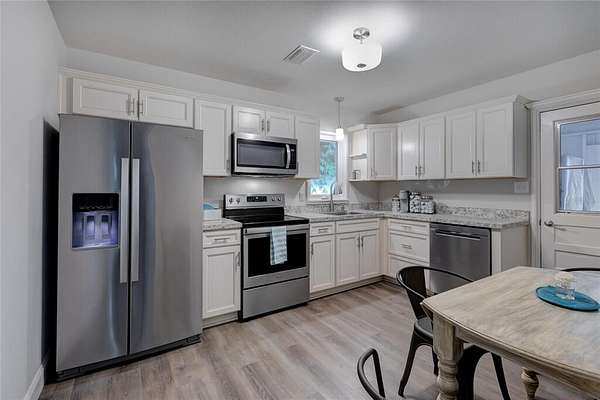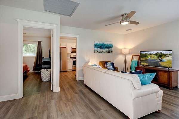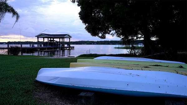 Multi family two acre Lake front property on private spring fed Lake Ola, minutes from Historic downtown Mt Dora! Currently rented as a vacation rental, this property is available completely furnished and turn key. There are four homes on this property, one of which is a duplex, for a Toal of 5 private residences. On 120 feet of Lake front, the covered private dock was completed in summer 2020. All homes have been recently renovated with new roofs in January 2022, repipe in 2019, and each residence includes its own washer and dryer. Lakey Daze cottage is the largest home on the property with a two car garage, large oversized driveway, 30 amp hookup and plenty of room for boat or RV parking. Home has three bedrooms and two bathrooms downstairs and two additional rooms and full bathroom in the upstairs loft. Firefly Cottage is a two bedroom, two bath home with a one car garage that is under air and currently used as a bonus room. Sunset and Sunrise cottage are a duplex each with two bedrooms and one bathroom. Lastly, Rockin Fish Camp cottage is a cozy one bedroom, one bath, with the best views to the lake. Please see video walkthrough that includes a quick tour of each home.