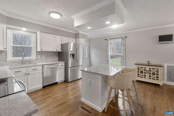 Tucked away on nearly 4 private acres in Ivy, this beautifully maintained property blends thoughtful updates with peaceful natural surroundings. Enjoy quiet mornings on the covered front porch or relax on the open back deck with partial cover—both perfectly positioned to take in views of the woods & thoughtfully curated landscape. The home features 3 bedrooms & 2.5 bathrooms, along with an unfinished basement that offers excellent potential for future expansion, storage, or a workshop. Don't forget the bright Kitchen with Granite Countertops, island & some newer appliances. Outdoors, the setting truly shines: Meticulous plantings create a park-like feel, highlighted by a charming wildflower meadow & a small orchard with apple & nectarine trees. The lush, healthy lawn adds to the sense of care and pride throughout the property. Major improvements over the past 5 years include new windows, siding, two HVAC systems, water heater, & electrical updates for a generator hookup. The roof is just 12 years old, complemented by newer gutters with gutter helmets & skylights replaced in 2019. A rare opportunity to enjoy space, privacy, & have nearly everything done for you!