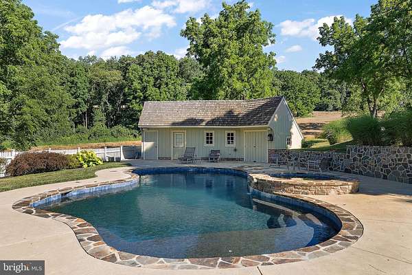 Set in the rolling hills of Andrews Bridge Hunt country on the border between Chester and Lancaster Counties, this 124-acre private estate provides presence and serenity. Enjoy the quiet luxury of a gated entrance surrounded by lush woodland, which opens to an expansive compound. The custom-built Tidewater design Main House features beautiful custom hardware and lighting, and three ensuite bedrooms. The main level boasts a two-story foyer, formal dining room, living room with walk in fireplace, breakfast area, custom kitchen, butler pantry and everyday entrance. The lower level of the home features a family room with wet bar, an office and an exercise room that is currently being used as a fourth bedroom. The first floor includes a gourmet kitchen, butler's pantry, dining room and gracious living room with French doors that open to a flagstone covered porch which extends the length of the house. A four-bay heated garage is also attached to the house. The Main House is strategically situated on the property for sweeping views of the pond, spring house, pastures, fields and woodlands. For entertaining, a heated pool and pool house with a wet bar and full bathroom are located to the side of the home. Just over the crest of the hill with its own driveway is a 3 bedroom, 2 bath guest cottage, next to an insulated barn. The 50X100 ft equestrian barn has been converted to an entertainment barn, which includes a kitchen area, 5 box stalls and powder room. The equipment barn is 30X125 ft with 9 bays; two bays are enclosed with heat and A/C, a third bay is being used as an office. Pasture and three paddocks comprise approximately 10 acres with run-in sheds, feeders and automatic waterers. Previous owner had 1/4 mile training track which grass has grown into sand and could be refreshed. Approximately 15 acres are currently in fields. You will not tire of exploring this magnificent property, with miles of groomed trails through the woods and along the fields, and a picnic area on the Octorara Creek frontage. In addition to the front entrance, there is a 6/10-mile rear drive that meanders through the woods. Property is under the Lancaster Farm Land Trust Easement and Act 319. Call Agent for multiple homesite possibilities.