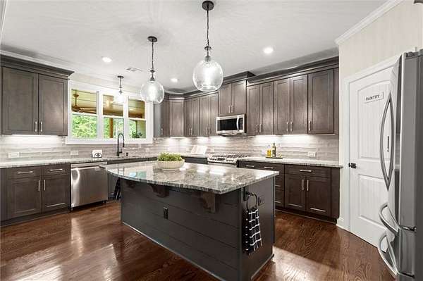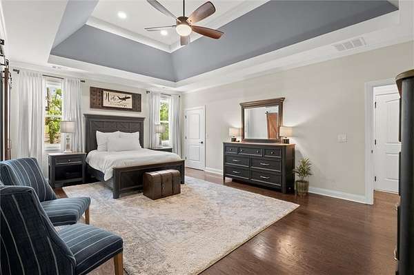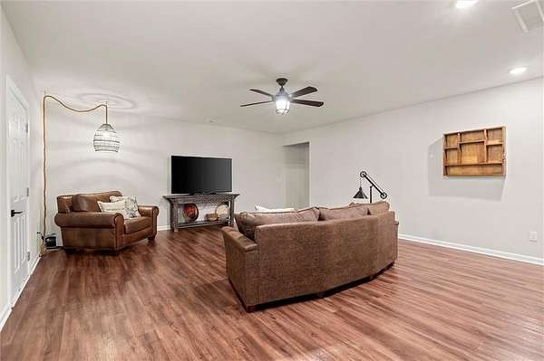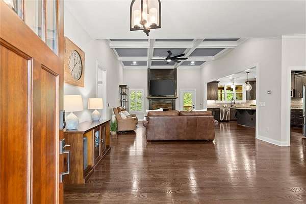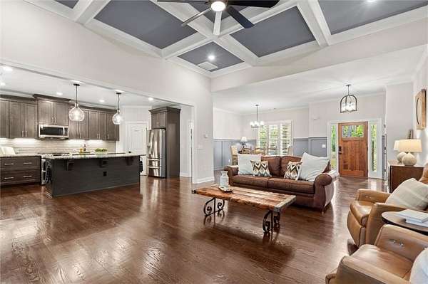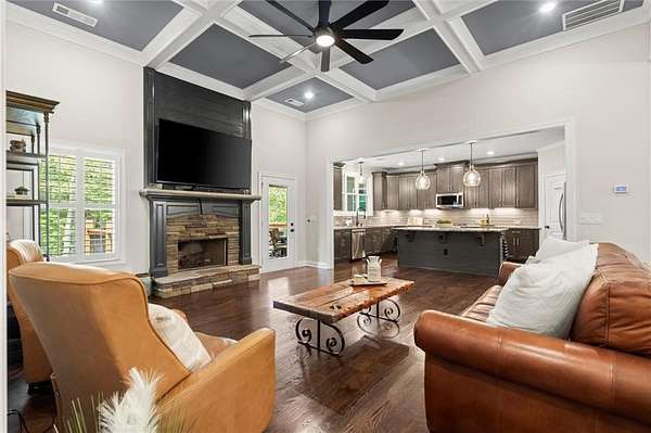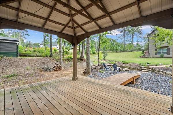 Look no further--this beautifully maintained ranch offers the best of main-level living with a bonus...full, partially finished terrace level, all nestled on a serene 2.47-acre, level lot in sought-after Ball Ground, GA. With no HOA, room to spread out, and endless possibilities, this property is a true gem! Step inside to find a gorgeous kitchen featuring top of the line stainless appliances, gas range, double ovens and a massive island that overlooks the spacious, fireside family room with coffered ceiling--ideal for everyday living or entertaining guests. Just off the main living area, an expansive covered rear deck offers the perfect place to relax, dine outdoors, or take in the peaceful views of your private wooded oasis. The backyard is loaded with lifestyle features, including a fire pit, gazebo with lighting and electrical outlets, and an additional barn/workshop--perfect for hobbyists, storage, or future projects. Downstairs, the terrace level offers a generous family/media room, bedroom and full bath, and a bright flex room--ideal as an office, craft room, or even a 5th bedroom with the addition of a closet. A large unfinished area offers space for a workshop, gym, or storage and opens to the lower-level patio and yard through a separate exterior entrance. The terrace level also has its own driveway and private entry, making it perfect for guests, multigenerational living, or rental potential--plus space to park two additional vehicles. Located just a few miles from charming Downtown Ball Ground and all it has to offer...shopping and dining and easy access to top-rated Cherokee County schools, this peaceful and versatile property is the perfect blend of rural tranquility and convenience.