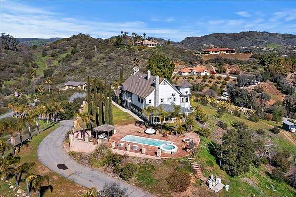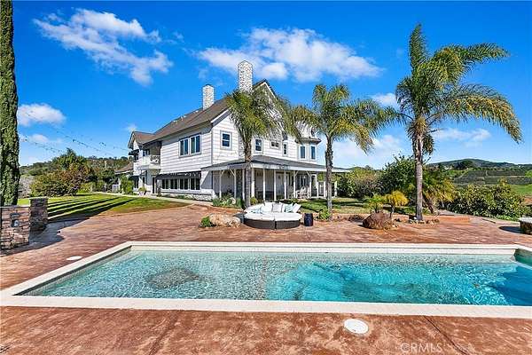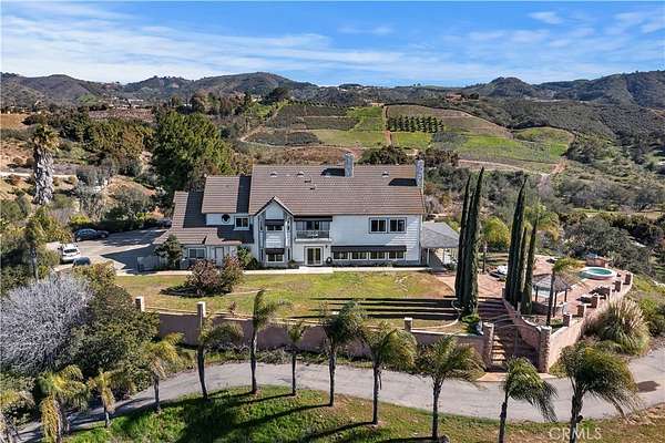 Luxury at its finest with this stunning pool home and guest house with pool, in the highly desirable area of De Luz, just minutes from Old Town Temecula, schools, shopping, dinning, freeway and entertainment. You will be in awe at the spectacular 360 degree views from every room throughout this stunning 4,861 sq. ft. estate positioned on a over 5+ acres of gorgeous land. As you drive up the private driveway, enjoying the breathtaking views, you'll come upon an orchard that consists of 14 mango and 19 grapefruit trees, you'll then pass by a lovely guest home with 2 bedrooms and 2 bathrooms, giant balcony, and its own private pool and spa, excellent potential rental opportunity!!