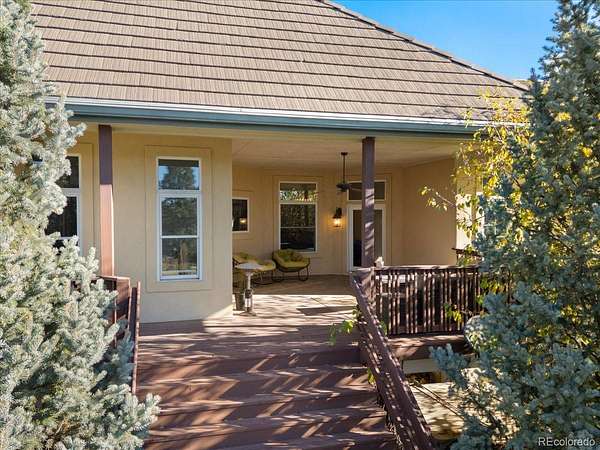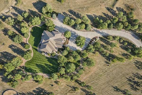 Nestled among the pines in sought-after Sterling Tree Farm, 4637 Palmer Ridge Drive is a rare 5.41-acre luxury estate in Parker, Colorado offering mountain views, privacy, and equestrian potential. This 5-bedroom, 5-bath custom home spans 6,171 sq ft and combines serene acreage living with close-in convenience—just minutes to downtown Parker, Colorado Horse Park, and The Pinery Golf & Country Club. Light-filled interiors feature soaring ceilings, expansive windows, and a covered wraparound deck for seamless indoor-outdoor living. The gourmet kitchen includes stainless steel appliances, abundant cabinetry, and a large center island. A formal dining room with wet bar and a bright sunroom provide ideal spaces for entertaining or flexible living. The primary suite offers mountain views, a sitting area, double-sided fireplace, and spa-like bath. Three additional upstairs ensuite bedrooms provide comfort and privacy. The finished walkout basement features a media area, wet bar, large recreation space, and a fifth ensuite bedroom—ideal for guests or multigenerational living. Recent updates include newer boiler, hot water tank, air handling and condensing units, roof inspection, and constant-pressure well system. With its combination of acreage, privacy, mature trees, and proximity to top amenities, this property represents a rare opportunity in today’s market. An exceptional value for a home of this size, setting, and location—this is a standout opportunity not to be missed.