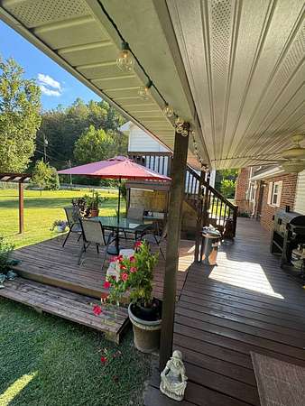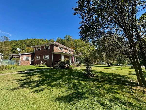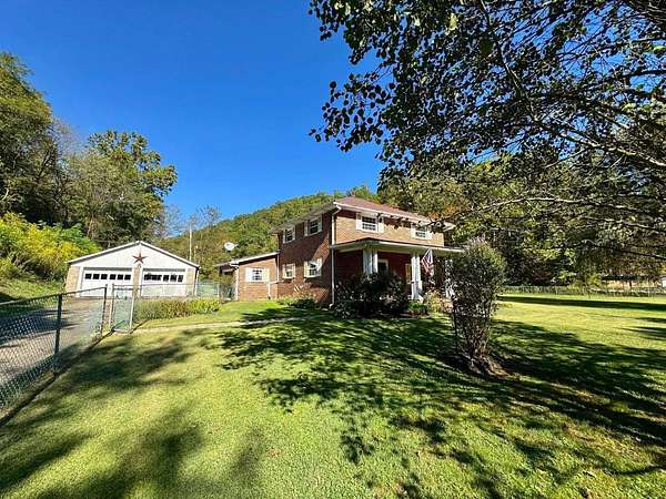 4638 Arnoldsburg Road Spencer, WV - Traditional 2-story colonial brick homestead offering approximately 2,700 sq ft of living space on 76 acres +/-, complete with UNLIMITED FREE GAS. The property encompasses the original main structure and an attached "mother-in-law" suite, collectively featuring 6 bedrooms, 2 full baths, home office area, living room (with fireplace), dining room, 2 fully equipped custom kitchens (with appliances), and a spacious family room. Exterior highlights include superior curb appeal, covered front porch, covered rear deck, cellar with cellar house, 2 outbuildings, attached 2-car garage, and additional detached 2-car garage. The land boasts picturesque bottoms, ideal for a hobby farm, wooded areas perfect for outdoor enthusiasts, and a creek. Notable perks include a new furnace, central air conditioning, water well (with softener system), newer metal roof, and double-pane windows throughout. Conveniently located less than 10 miles from the town of Spencer. $429,000