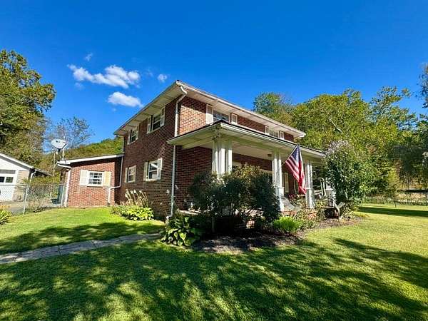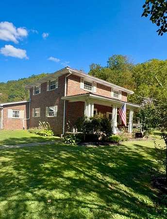 4638 Arnoldsburg Road Spencer, WV - Traditional 2-story colonial brick homestead offering approximately 2,700 sq ft of living space on 76 acres +/-, complete with UNLIMITED FREE GAS. The property encompasses the original main structure and an attached "mother-in-law" suite, collectively featuring 6 bedrooms, 2 full baths, home office area, living room (with fireplace), dining room, 2 fully equipped custom kitchens (with appliances), and a spacious family room. Exterior highlights include superior curb appeal, covered front porch, covered rear deck, cellar with cellar house, 2 outbuildings, attached 2-car garage, and additional detached 2-car garage. The land boasts picturesque bottoms, ideal for a hobby farm, wooded areas perfect for outdoor enthusiasts, and a creek. Notable perks include a new furnace, central air conditioning, water well (with softener system), newer metal roof, and double-pane windows throughout. Conveniently located less than 10 miles from the town of Spencer. $429,000