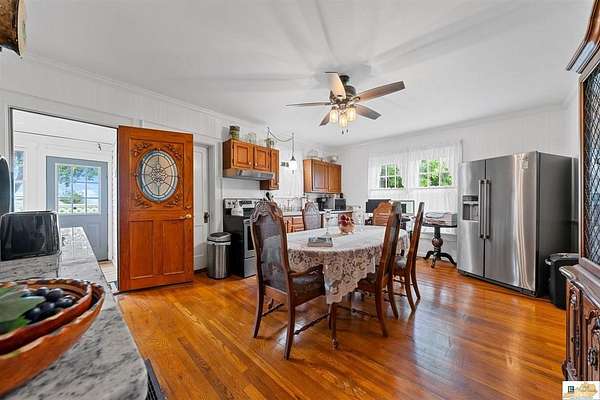 Step into a piece of Kentucky history with this stunning Greek Revival home, known throughout Taylor County as the iconic "Civil War House." Built in 1851, this beautifully preserved residence sits on 1.6 scenic acres and offers breathtaking views from every angle. With six spacious bedrooms and two full bathrooms, the home features tall baseboards, unique period trim, and original hardwood floors that have been thoughtfully updated and have beautiful hardwoods in both bathrooms. The large kitchen is perfect for entertaining, complete with granite countertops and ample cabinet space. A separate laundry room adds convenience, while the heated and cooled sun porch provides a cozy spot to enjoy the seasons year-round. Outside, the property is enclosed by quality Amish-built fencing, and the charming flagstone patio is ideal for relaxing or gathering with family and friends. Two covered verandas offer tranquil outdoor spaces to take in the peaceful surroundings. The home also includes central heat and air (just 3 years old), a newer roof (under 2 years old), city water and functional fireplaces one of which is in the master bedroom that is ventless logs. Home is located just five miles from Green River Lake State Park, you'll have access to over 1,300 acres of recreational space, 28 miles of multi-use trails for hiking and biking, and an 8,210-acre lake perfect for boating, kayaking, and canoeing. This is more than a home--it's a rare opportunity to own a timeless piece of history with modern comforts and natural beauty all around.