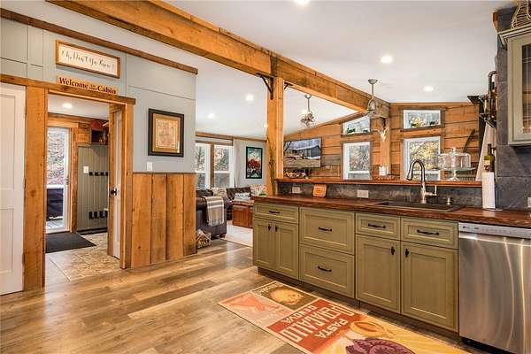 Welcome to your very own slice of paradise nestled in the beautiful Western Catskills! This charming 3-bedroom, 2-bath home sits on over 6 acres of serene forest, and guess what? It's just had a fabulous makeover! Step inside this LIKE-NEW beauty, where everything shines and sparkles. With a brand-new metal roof, fresh HardiePlank siding, and inviting new decks, you'll feel like you've walked into an Instagram dream! The bathrooms are sparkling with porcelain tile, gorgeous a wall paper and modern conveniences. The bedrooms boast new engineered floors, ceiling fans, and custom closet insert shelving The kitchen is a chef's delight with all-stainless steel appliances, a glass-safe sink, and live-edge counters that will be the envy of all your guests. Additional details you'll love include solid wood cabinets with soft-close-drawers, an automatic faucet, and a stylish repurposed slate-roofing backsplash that you'll just have see to fully appreciate how beautiful it is. The entire space is complete with rustic touches that take this country cabin to a whole new level of cozy luxury with solid wood doors, reclaimed wood, and hand-hewn beams with custom iron bracing. The primary suite bathroom has a jetted tub shower, porcelain tiling and fog-free mirrors. Nothing but the best! Built on a solid poured concrete foundation basement with new electric panel, a new LG laundry space, new well-pressure tank and a new Marathon 75 gallon water heater, there's plenty of room to grow-both in the home and on the property! Plus, there's a second building site complete with electricity, water, and septic, just waiting for your vision-maybe a garage or a creative workshop? All this is just minutes away from the charming villages of Delhi, Walton, and Franklin, and a breezy under-3-hour drive from the GWB. So, if you've been dreaming of a perfect retreat, your search ends here! Come see for yourself and get ready to fall in love!