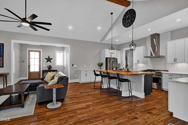 Located in a highly desirable North Chatham neighborhood, this beautiful home sits on 2 private acres and features a flexible main-floor living design with three bedrooms on the primary level. Inside, the home offers high ceilings, wonderful natural light, and an easy-flow floor plan designed for comfortable everyday living and entertaining. The gourmet kitchen with wormy maple countertop opens to the main living spaces and connects seamlessly to the outdoor areas. Enjoy quiet mornings or evening gatherings on the screened porch that opens to a spacious deck overlooking the property. An unfinished daylight basement and unfinished second floor provide exceptional opportunity for future expansion, allowing the next owner to easily add significant square footage if desired.