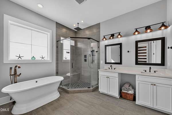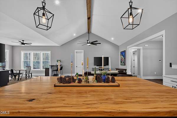 - Beamed Ceilings, Built-In Features, Cathedral Ceiling(s), Ceiling Fan(s), Double Vanity, Dry Bar, Entrance Foyer, High Ceilings, High Speed Internet, Kitchen Island, Open Floorplan, Pantry, Quartz Counters, Recessed Lighting, Separate Shower, Walk-In Closet(s), Water Closet