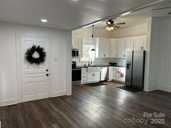 Experience the possibilities that this extensively remodeled 3BR/2BA Farmhouse w/new 30x50 metal outbuilding & wonderful unrestricted 46-acre parcel present! The acreage borders both Hamrick & Island Ford Roads. Nice stream runs through property & majority of land is walkable w/trails. Home has been thoughtfully remodeled & upgraded, almost everything new. New 4-bedroom septic system making future expansion possible. Well has new casing, well pump & lines to house. This is not your typical remodel, attention to detail & quality materials used. All required permits obtained & final inspections completed. Original kitchen, dining room & back hallway expanded to create an open living area concept. Kitchen w/appliances, granite counters & custom-made cabinets. Closet added to original living room, so it can be used as 3rd bedroom. Primary Bedroom now has a full bathroom. 2nd full bathroom w/washer & dryer also added. Majority of ceilings are 10'+ & original doors w/hardware salvaged when possible - original charm without sacrificing moder conveniences. The new 30x50 metal outbuilding with high ceilings & 3 rolltop doors has multiple uses. Current owner made a new trail down to picnic area by stream & has cleared land around house for animals, gardens, etc. This is a special property that is well worth your consideration! Call for more details.