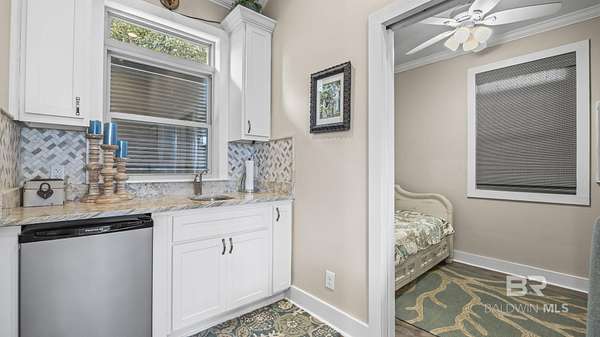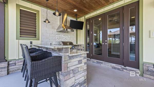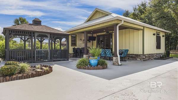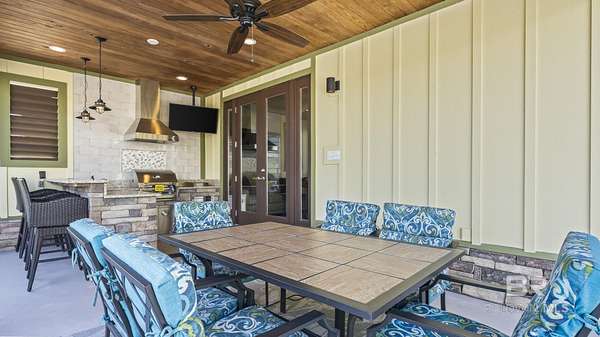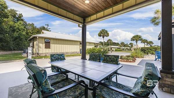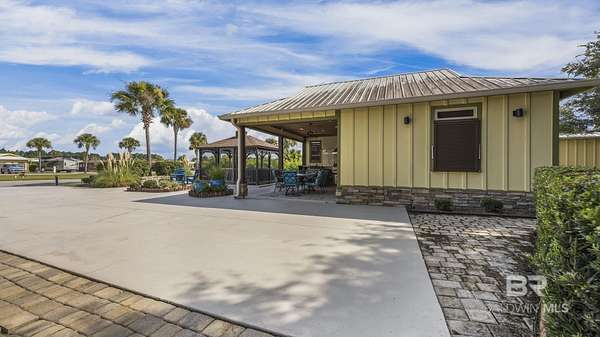 Welcome to your next adventure at Bella Terra RV Resort--a luxury destination for Class A and Super C motorcoaches along the stunning Gulf Coast. This SHOWSTOPPER has been meticulously maintained with attention to every detail, offering a perfect balance of indoor luxury and outdoor lifestyle. The premium north-facing site includes a custom one-bedroom casita with fresh paint, vaulted ceiling, crown molding, recessed lighting, ceiling fan, and coastal-inspired finishes. The kitchenette features a stainless sink, refrigerator, microwave, and custom white cabinetry. The living area is furnished with a queen sleeper sofa with Tempur-Pedic mattress, two recliners, and a wall-mounted TV, while the spa-style bath showcases a tiled shower with upgraded fixtures. The bedroom provides a stylish daybed for guests and a spacious closet with abundant built-in storage. Outdoor living shines with a 300 sq. foot pavilion with sunshades, the covered patio has a wood-inlay ceiling with recessed lighting and a full kitchen with granite bar seating, sink, mini fridge, custom tile backsplash, natural gas grill with stainless hood and side burner, and elegant bar lighting. Entertain with an outdoor TV, dining for six, a natural gas firepit, and a screened gazebo with seating, ceiling fan and water feature. Landscaped grounds feature a rock knee wall with lighting, drip irrigation, mature shrubs for privacy, and a shaded grassy area for pets. The expanded pad includes pavers on the utility pedestal side for added function. Resort amenities include a 6,000 sq ft clubhouse, zero-entry infinity pool, hot tub, fitness center, sauna, movie theater, stocked lake, dog parks, and a full calendar of activities. Buyer to verify all information during due diligence.