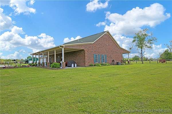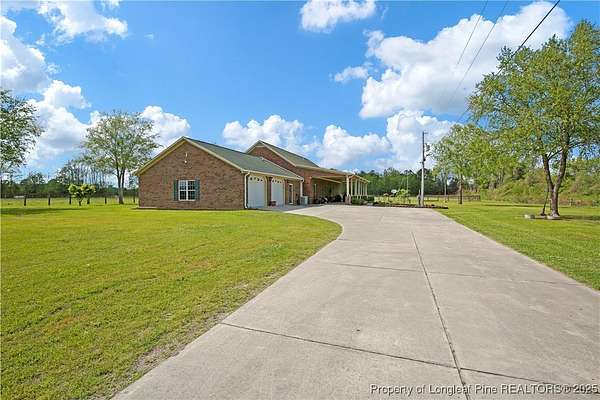This is a very nice property that is perfect for a horse, cattle, and/or other livestock farm on 15.67 acres. The main house is in immaculate condition with over 2800 sqft and 2-car garage with 3 bedrooms & 2 bathrooms, The home has custom features throughout with cabinetry, countertops, and 10ft ceilings. It was also well constructed, built with 2x6 exterior walls and brick exterior. Brand new roof installed in August of 2025 along with HVAC updates in 2024 and 2025. The main house has two septic systems and two gas hot water heaters, alarm, and camera system. There is a detached metal building with wraparound shelters that could be used for assemblies, family gatherings, or could be converted to a barndominium. The finished area of the building is over 2400 sqft heated with a full kitchen, full bathroom, and central HVAC. There are two pasture areas that are fenced in for livestock with v-mesh horse fence wire and the feeding lane is on a concrete pad. There is 1 shallow well, 1 deep well, along with 3 turnout stalls, 20 small livestock pens, and several other smaller barns for storage. Private pond on the property along with shelter for livestock inside the pasture area. See video link: