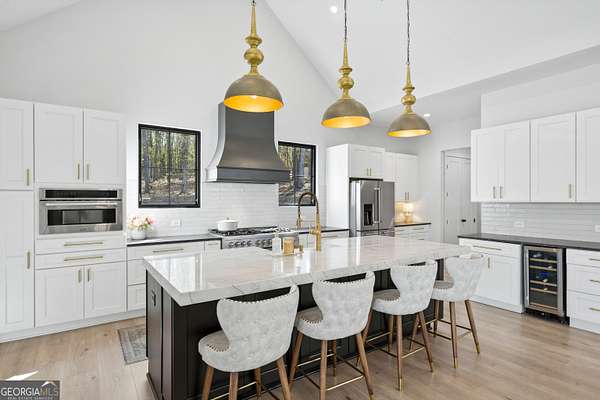 This beautifully crafted home combines luxury, convenience, and a strong sense of community. The chef's kitchen is a standout, featuring a ZLINE 8-burner stovetop and double oven, a butler's pantry, and custom Wellborn cabinetry. The primary suite offers direct access to the laundry room and heated floors in the bath, with stunning marble tile accents. The wall of windows in the living and dining areas floods the home with natural light, offering gorgeous views of the backyard. Enjoy year-round comfort with foam insulation throughout, a large gas fireplace, and Pella windows, including custom 4-panel sliding doors leading to the covered back porch. Additional features include an 18-ft ceiling in the kitchen and living room, a remote-regulated fireplace, and a 3-car garage with ample storage. The neighborhood itself is a peaceful haven with plenty of outdoor activities, including nearby hiking trails and a lookout point offering stunning views of the Blue Ridge Mountains. Wildlife enthusiasts will love the abundant deer and wild turkeys, while those looking for convenience will enjoy being close to a new Publix, Chick-fil-A, Longhorn Steakhouse, and local wineries. The gated community is well-maintained with monthly neighborhood events such as ladies' and men's lunches, happy hours at the lodge, and a small winery at the entrance. With an affordable HOA fee of $120 per month, this home offers a rare blend of luxury and value in an active, well-connected community. Schedule a showing and see everything this exceptional property and neighborhood have to offer.