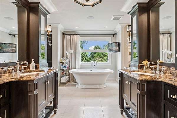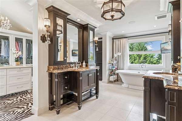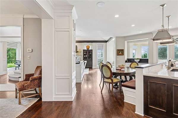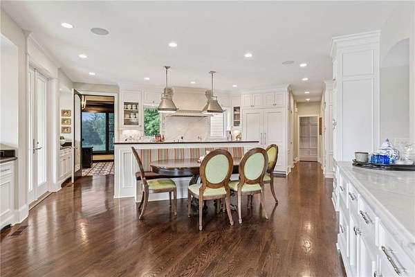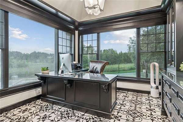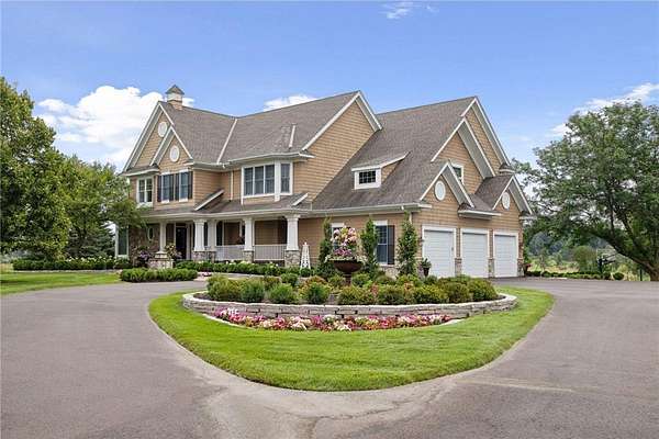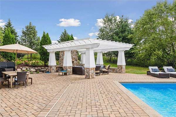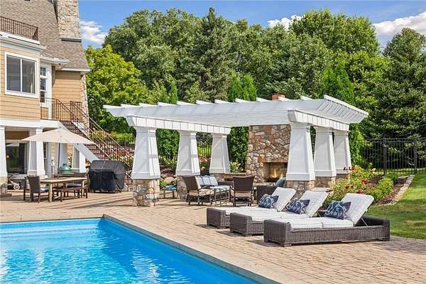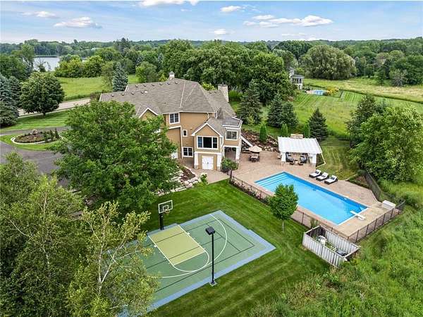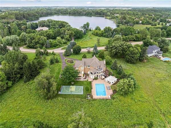 Discover the pinnacle of refined living in this extraordinary DeWitt Custom Home, ideally situated on 2.8 private acres in the highly sought-after Cloverdale Farms community. A true sanctuary, this property offers a stunning outdoor oasis featuring a sparkling pool, expansive paver patio, wood-burning fireplace beneath a charming pergola, and a large sport court--perfect for entertaining and recreation. From the moment you step inside, you'll be captivated by the grand volute staircase with wrought iron railings, soaring vaulted ceilings, paneled wood walls, and a welcoming built-in bench. Rich wood floors flow throughout the home, complemented by inset custom cabinetry, crown molding, shiplap ceiling details with exposed beams, and upgraded baseboards and casing. A concrete fireplace surround adds architectural depth to the living space. The chef's kitchen is a masterpiece, showcasing Wolf and Sub-Zero appliances, marble countertops and backsplash, a beverage refrigerator, built-in hutch, walk-in pantry, and custom banquette seating in two locations--ideal for casual dining and gatherings. Two private offices with built-in cabinetry provide the perfect work-from-home flexibility. The oversized mudroom features in-floor heat, abundant cubbies, and storage cabinetry, while the adjacent laundry room is thoughtfully designed with quartz countertops, floor-to-ceiling storage, and a built-in dog kennel. Upstairs, you'll find four spacious bedrooms including a Jack-and-Jill suite, a private guest suite, and a truly luxurious primary suite worthy of Architectural Digest. The primary bedroom features a custom walk-in closet with a center island, glass-front cabinetry, and a second laundry area conveniently located just off the closet. The spa-inspired ensuite includes heated floors, an oversized walk-in shower, freestanding soaking tub, dual vanities with marble counters, and exquisite finishes throughout. The walkout lower level is an entertainer's dream, featuring a spacious great room with fireplace, billiards room, game area, exercise/guest room, and a large wet bar complete with wine fridge, bar fridge, microwave, and Corian countertops. A charming three-season porch with beadboard walls and paneled ceiling provides a serene space to enjoy warm summer days. Additional features include three-zone heating, Andersen windows, a new driveway (2025), extensive professional landscaping (2025), and an oversized heated garage with epoxy floors and direct access to the lower level. This is truly the jewel of Cloverdale Farms--a must-see for the discerning buyer seeking privacy, luxury, and timeless craftsmanship.