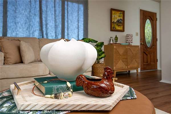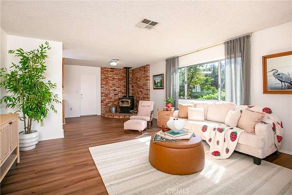Two legal homes for the price of one, on a five-acre ranch, equestrian neighborhood, and it comes furnished! It's the perfect mixture of a home and a place to get away from the business of the world. Stepping onto the property you're greeted by lovely gardens and nature. The main home you enter with the living room to your right and hall (with pantry) to dining on the left. The living room has spectacular views of the meadows, that get poppies and many wildflowers in the Spring, and mountains in the distance. There is also a wood burning stove in the corner to nestle up to in the winter months when there is snow on the ground.