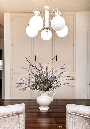 The kitchen is a time capsule for the lovers of Mid-Century Modernity with its elegant golden wood tones and craftsmanship. The kitchen overlooks the garden and the guest house. Next, we have a formal dining area with cabinetry and closet for all your cutlery and wares. On your left you have office that could be easily turned back into a bedroom. Then a second bedroom followed by the primary suite. Lastly, there's a large bonus room that could be a playroom or extra sitting room or crafts room; whatever you want really.