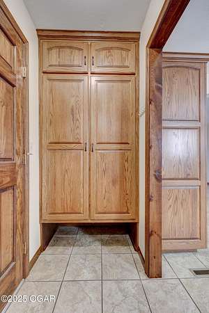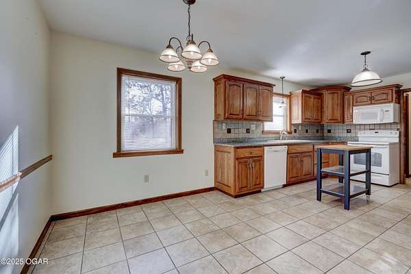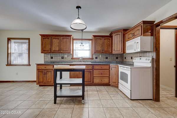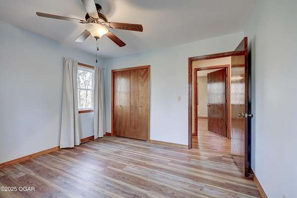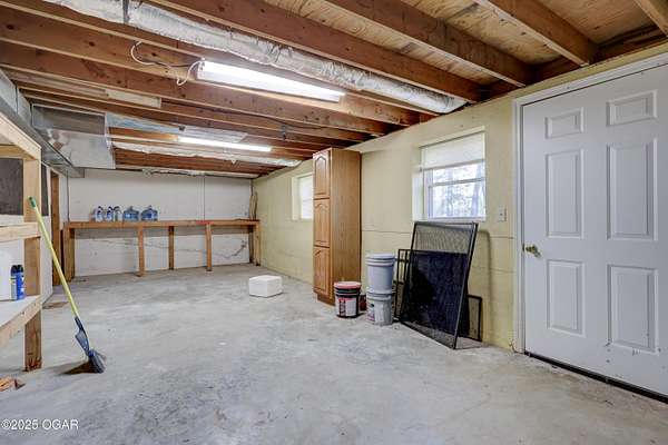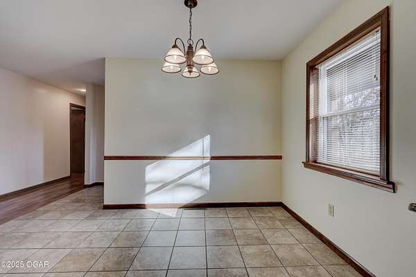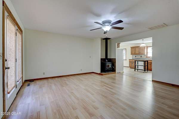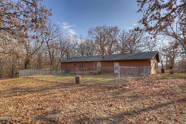 Discover a peaceful retreat on Dolphin Drive in Joplin. Set on six wooded acres just outside of town, this well-maintained home offers a comfortable cabin-like feel with privacy, space, and room to enjoy the surrounding natural setting. A circle drive and walkway that leads to a covered front porch. The home features two inviting living areas. The front living room sits just off the foyer and includes two glass-paned doors and a large picture window overlooking the porch. The second living room measures approximately 17 by 16.5 feet and opens to the backyard where a recently updated deck-redone in 2023- is enclosed with chain-link fencing. A wood-burning stove adds warmth and ambiance to the main living space. The kitchen offers an open layout with plenty of cabinetry, an eat-in space that also functions well as a dining area, and a sink positioned beneath a front window. The convenience continues with an adjacent half bath located near the garage entrance. The primary suite includes a spacious bedroom, two closets, and a private bath with a tub and shower combination, vanity, and additional storage. Two more bedrooms are located at the end of the hall, each with two windows that frame views of the wooded surroundings. The main bathroom offers a stand-up shower and vanity and is easily accessible from the hallway. A partial, unfinished walk-out basement provides storage flexibility and includes the home's laundry area. The attached two-car garage adds everyday convenience. With wildlife often seen throughout the property and plenty of room to enjoy the outdoors, this home offers a quiet setting and a true sense of country living while remaining close to town. It is move-in ready and prepared to welcome its next owner.