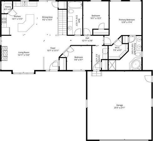 Enjoy the perfect blend of country tranquility and convenient living with this inviting rambler on nearly 5 acres! Main-level living features 2 bedrooms plus an office and 2 full baths, including a primary suite with walk-in closet and private bath. The open main level showcases 9-foot ceilings, a bright kitchen with stainless steel appliances and walk-in pantry, a casual dining area, and a spacious living room with gas fireplace—all flowing together for everyday living or entertaining, with views overlooking the scenic property. The unfinished lower level with bathroom rough-in offers endless potential for expansion. Outside, discover a peaceful pond, abundant wildlife, a storage shed, and partial chain-link fencing. The oversized heated and insulated garage provides ample space for vehicles, hobbies, or storage. Don’t miss this opportunity to enjoy country living just minutes from town!