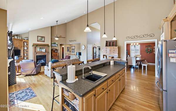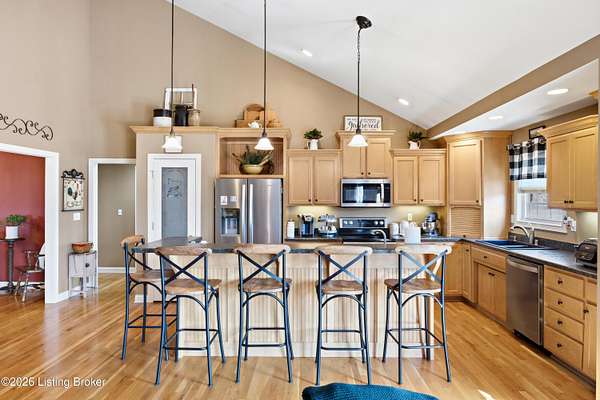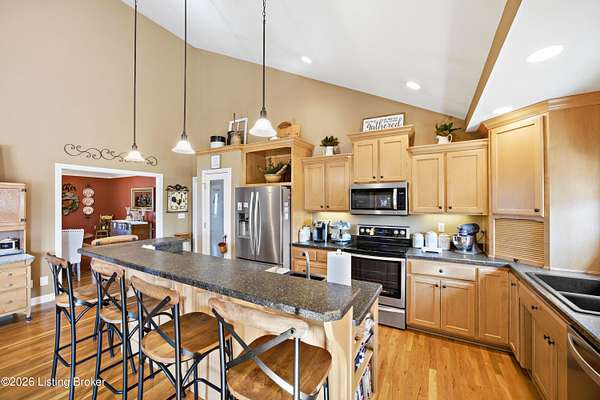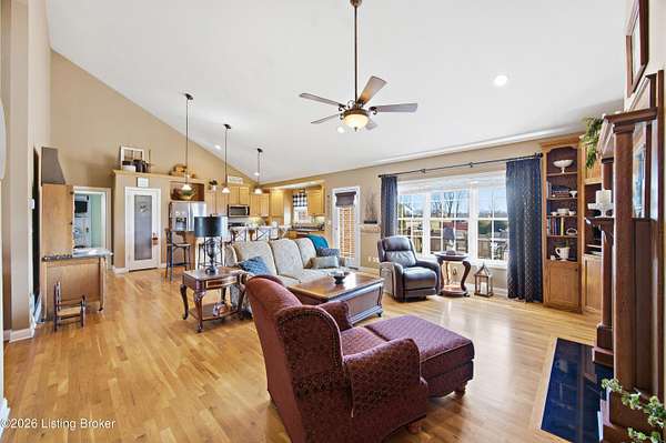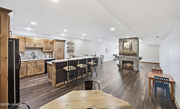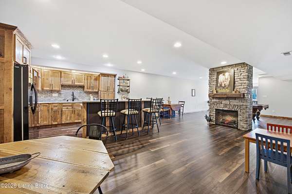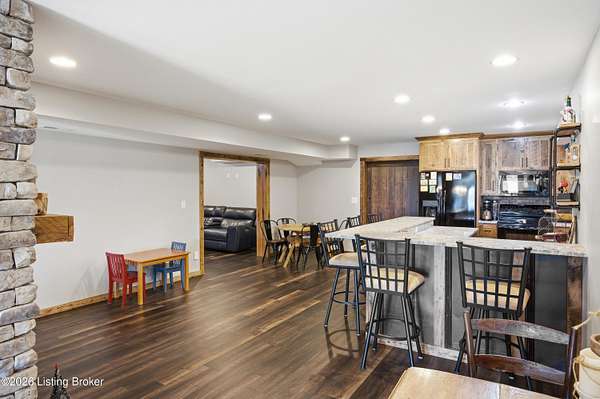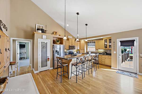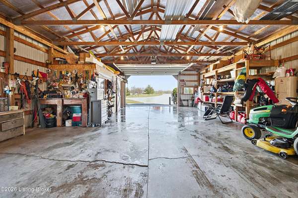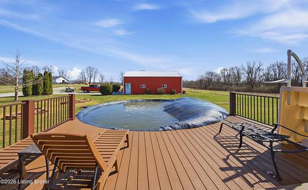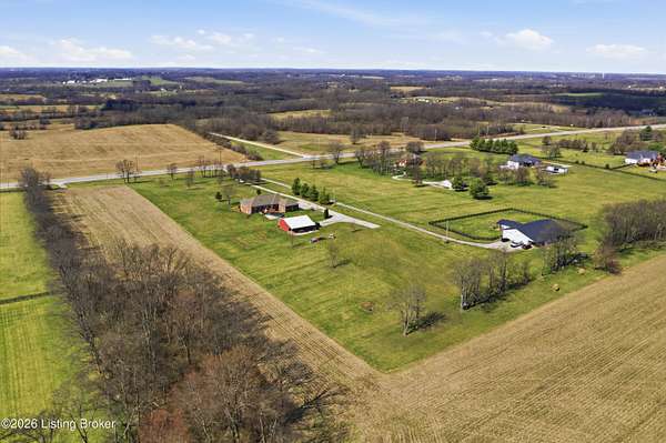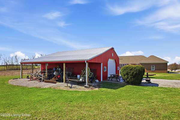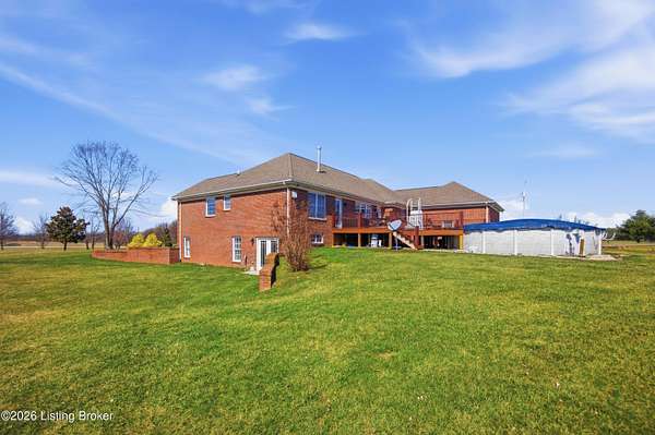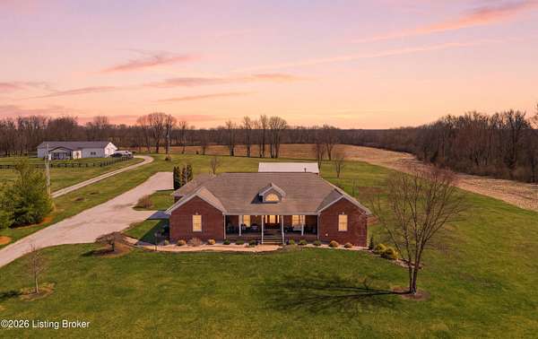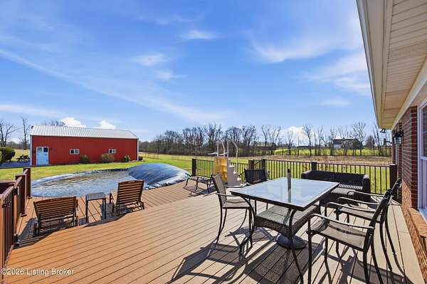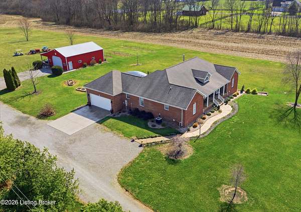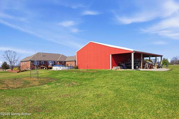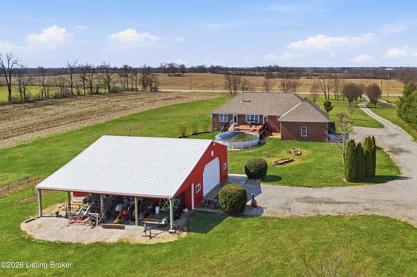 Set on 5 acres just outside Shelbyville, 4643 Eminence Pike offers the kind of space and flexibility that is hard to find, a well cared for home with nearly 4,700 finished sqft, a walkout basement with its own kitchen, and a solid barn ready for work or storage. The home features 2,691 sqft above grade and another 1,970 finished sqft in the walkout basement. It has been well maintained and is move-in ready. Inside you will find 5 bedrooms, 3 full bathrooms, and one half bathroom. 4 of the 5 bedrooms include walk-in closets. Hardwood floors run through the main level living areas and give the home a warm, clean feel. The primary suite offers a large tiled bathroom, an oversized walk-in closet with an island, and a private door that leads directly to the back deck. The finished walkout basement adds a great deal of flexibility. It includes a full kitchen, separate washer and dryer hookups if needed, and more than 700 square feet of storage space. With its layout and exterior access, the lower level works well for extended family, guests, or a multi-generational living arrangement. The home is supported by two 200 amp electrical panels and a dual heat HVAC system. Out back, a maintenance-free Trex deck overlooks the yard and a 24 foot above-ground pool with a new liner ready for the upcoming season. The property also includes a well built 1,200 square foot barn with a concrete floor, water, and its own 100 amp electric panel. The structure was built with double strength trusses and support posts every five feet. A 480 square foot lean-to extends off the barn and provides additional covered space for equipment, tools, or materials. The setting offers quiet country living while staying convenient to town. You will not regret visiting this home! Call today