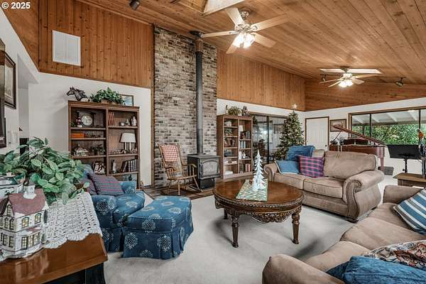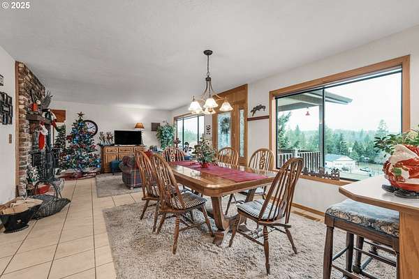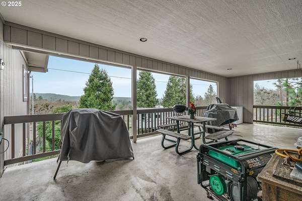 Set among the wooded hills of Glen Echo, this nearly five acre property borders 714 acres of BLM land and offers rare privacy, views, and opportunity. The home is positioned high on a knoll, framed by mature trees and open meadow, with expansive views of the Table Rocks and even the Crater Lake Rim on clear days. The main living space is designed for single level living and features a cozy country kitchen, a brick fireplace, and oversized windows that fill the home with natural light and surrounding scenery. A second driveway behind the home provides direct access to the main level without using the stairs. Multiple covered patios create the perfect setting for quiet mornings or relaxed evenings while taking in the views. The daylight lower level has its own entrance and works well for guest space, multi generational living, or potential rental use. With a barn, irrigated pasture, and covered dog runs, the property is well suited for animals and a variety of uses. Located just minutes from town and historic Jacksonville by way of scenic Old Stage Road, this property captures the feel of true Southern Oregon country living.