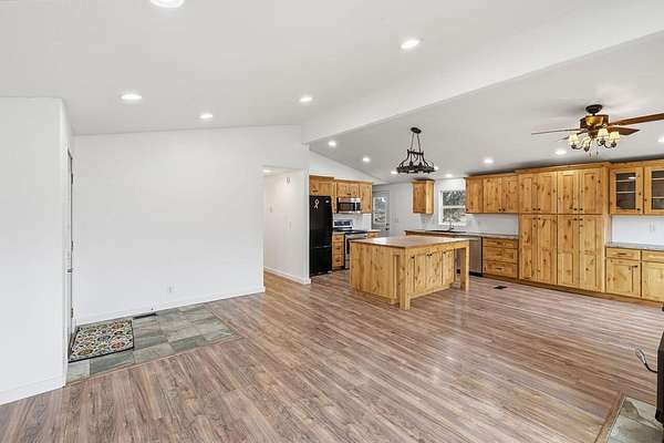 Beautifully updated home on a wide, flat 2.51 acre lot in Tetherow Crossing! This nicely refreshed 3 bed 2 bath home features a desirable great room floor plan with stunning open kitchen fully remodeled with new cabinetry, countertops, a huge island work space, appliances and flooring. The oversized primary suite offers a spacious en suite bath with jetted tub and a large ADA accessible walk in shower. Sliding glass doors open directly from the primary bedroom to a brand new deck! The home has been freshly painted inside and out and offers metal roofing on the home and shop. A massive 30'x56' three bay shop provides possibilities with room for an office! Bring all your hobbies and toys, this fully fenced and gated property offers many wonderful opportunities.
