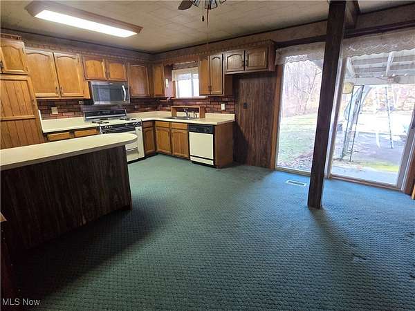Enjoy peaceful country living just minutes from town in this inviting home filled with potential situated on a nice 1.5 acre lot. The main level features a spacious eat-in kitchen with island that flows into a formal dining room, while the cozy living room offers a comfortable place to relax. This home also boasts a main-floor bedroom, full bathroom, and convenient first-floor laundry room. The upstairs includes two nice size bedrooms. Step outside to a nice, private backyard with covered patio and an older in-ground pool that has not been used recently but may still have potential to restore. Additional highlights include a detached two-car garage, an extra workshop, and storage shed, providing plenty of space for hobbies, tools, and storage. With its desirable layout and generous outdoor space, this property offers a great opportunity to make it your own. Call today for a private tour!