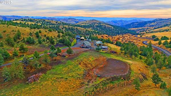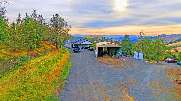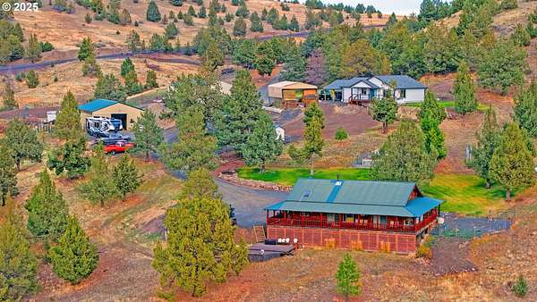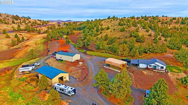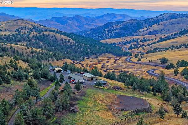Windy Ridge Ranch ~ Pristine 778 acres juniper covered rangeland 2 homes,shop,barn,arena,hayshed,chicken house.Grazing/Hunting ranch, mountain views.This scenic setting offers privacy and endless 360-degree territorial views of the horizon with a beautiful driveway entrance behind a locked gate.The silhouette of Mount Jefferson peaks above the ridgeline as a statuesque backdrop.This is an expansive landscape with a palette of a seemingly endless oasis of breathtaking topography.The main stem of the John Day River is about a ten-mile trek to the west.This well-known channel offers some of the finest bass and steelhead fishing in the state and is renowned for its river rafting adventures along the pristine waterway.The custom-built 3/2 log home with loft was constructed locally in 1998 and boasts panoramic views from the wrap around deck overlooking the canyon and mountain scenery below. Tastefully decorated in rustic charm, the seller could offer this turnkey and fully furnished.The 2/1 Hiline Home was placed in 2020 and shares 60 GPM well along with DEQ approvals on both homes and separate septic systems.The garage was converted into an exercise room and storage area with outside access to the adjoining carport.Either of these homes would make a great VRBO for extra income, managers dwelling or full-time residences.Wood heat, mini splits, propane instant hot water and appliances provide cost efficiency. Both homes have dog kennels and runs and have audio/video surveillance.There are raised garden beds with asparagus and raspberries with an underground sprinkler system.Prolific springs that are developed are well scattered throughout the three pastures where more are undeveloped for future resources for wildlife and cattle. 3 miles of seasonal Lone Pine Creek traverses the boundary line close to John Day National Monument in Clarno with a wealth of history and vast geological formations.Current use is grazing, equine and hunting. Must see to appreciate. Appt. only.