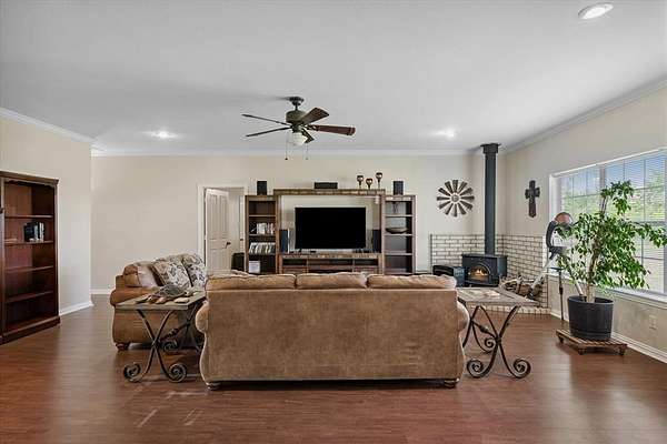 Outside, the property shines -- a massive 3-car garage plus additional covered parking gives you room for vehicles, trailers, toys, or even a workshop. There's also a barn for livestock or equipment, a gated entrance, and a stocked pond perfect for fishing on your own land.
