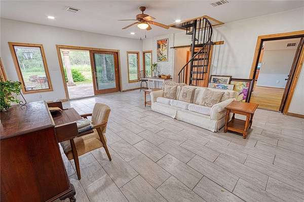 Country Living on 9 Acres - Your Private Oasis Awaits! Escape to the peaceful country lifestyle you've been dreaming of with this spacious 4-bedroom, 2.5-bath home perfectly situated on 9 beautiful wooded acres. As you enter through your own private, tree-lined driveway, you'll immediately feel the tranquility and privacy this property offers. The home features a 2-car attached garage plus a detached 3-car garage that's connected to a 16x30 workshop-ideal for hobbyists, mechanics, or anyone needing extra space for tools, equipment, or storage. Inside, you'll find a formal living room and dining room, an inviting eat-in kitchen, and a stunning 400 sq. ft. sunroom surrounded by Pella windows-perfect for relaxing with morning coffee or enjoying the natural views year-round. Beautiful hardwood floors grace the downstairs living areas, while brand-new carpet provides comfort throughout the upper level. The home is thoughtfully equipped with energy-efficient upgrades, including a solar blanket across the attic, a solar-powered attic fan, and newer double-pane insulated windows to help maintain comfort and reduce utility costs. Major updates bring peace of mind, with a recently replaced roof, new water heater (2025), and new dishwasher (2025). Every detail has been cared for, allowing you to move right in and start enjoying your new lifestyle. Step outside to your large outdoor pergola featuring elegant Canterra marble columns-a perfect setting for outdoor entertaining, dining al fresco, or simply unwinding after a long day. The surrounding mesquite trees create a natural canopy, providing shade, privacy, and a serene atmosphere that feels worlds away yet conveniently located near modern amenities. This remarkable property offers the ideal blend of comfort, functionality, and country charm. Whether you're seeking space for yourself, hobbies, or a peaceful retreat from the city, this 9-acre estate delivers it all.