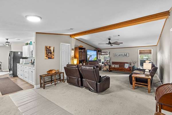 Welcome to peaceful country living with modern updates! This beautifully remodeled 4-bedroom, 2-bath mobile home sits on just over 2 spacious acres in Cross City, offering the perfect blend of privacy, comfort, and convenience. Inside, you'll find a thoughtfully updated interior designed for both everyday living and entertaining. The inviting living room features custom wood trim and a stunning beamed ceiling, adding warmth and character while creating a welcoming focal point for the home. Natural light fills the space, making it feel open and comfortable. The galley-style kitchen has been updated with modern cabinets and countertops, offering plenty of storage and workspace while maintaining an efficient layout for cooking and meal prep. It's both functional and stylish for everyday living. The spacious primary suite offers a relaxing retreat, complete with a large master closet and an updated bathroom featuring a walk-in shower designed for comfort and convenience. Three additional bedrooms provide flexibility for family, guests, or a home office. One of the standout features of this property is the newly built large front porch, perfect for relaxing with your morning coffee, enjoying the quiet country setting, or entertaining friends and family while overlooking the property. Outside, the well-maintained 2+ acre property provides plenty of room for outdoor activities, gardening, animals, or simply enjoying the peaceful North Florida surroundings. Conveniently located just minutes from downtown Cross City, you'll have quick access to shopping, restaurants, schools, and everyday necessities. Outdoor enthusiasts will appreciate being a short drive from the Suwannee River, area springs, and the Gulf of Mexico, offering excellent opportunities for boating, fishing, scalloping, and exploring Florida's Nature Coast. If you're searching for a move-in ready home with acreage, modern upgrades, and a peaceful location close to town, this Cross City property is a must-see. Schedule your private showing today!