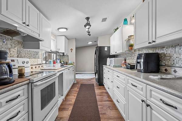 - Ceiling Fans, Eat-In Kitchen, Electric Range, Kitchen/Dining Combo, Laminate Counter, Laundry/Utility Room, Living Room, Open Floor Plan, Separate Dining Room, Walk-In Closet(s), Wood Cabinets, w/ Hookups