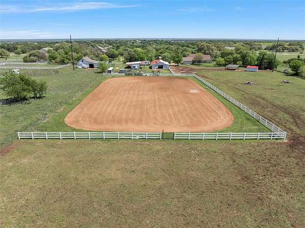 Gorgeous Equestrian Property with Beautifully Updated Home, Superb 6 stall barn, 150x250' riding arena, fenced pastures, and so much more! Located in the highly desirable Hills of Childress Creek in China Spring, TX, this absolutely beautiful horse lover's dream property sits on 8.42 pristine acres and offers the perfect balance of luxury and functionality. Built in 2003, the Austin stone home features 3 spacious bedrooms, 2.5 baths, and stunning updates throughout--including decorator colors, vaulted ceilings, wood and tile floors, formal dining, breakfast area, and a large kitchen with an island, brand-new appliances, and shaker-style cabinets. Enjoy peaceful mornings on the wrap-around porch or screened-in back porch, overlooking a fenced backyard and lush, partially tree covered pastures. A circular driveway, extra parking, and a 2-car detached garage add convenience, while the white PVC fencing enhances the property's curb appeal. Equestrians will fall in love with the 150'x250' riding arena, 6-stall horse barn with automatic waterers, tack & feed room, wash room with tankless water heater, concrete center aisle, additional barn with chicken coop, hay storage, and more. Complete with loafing shed, round pen, RV hookups, solar panels, and covered equipment storage, this move-in ready estate is the ultimate equestrian dream!