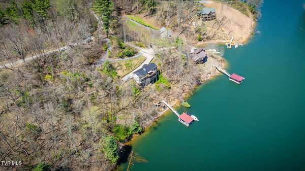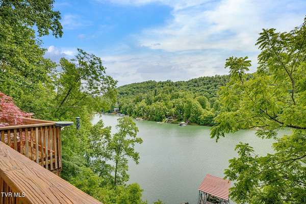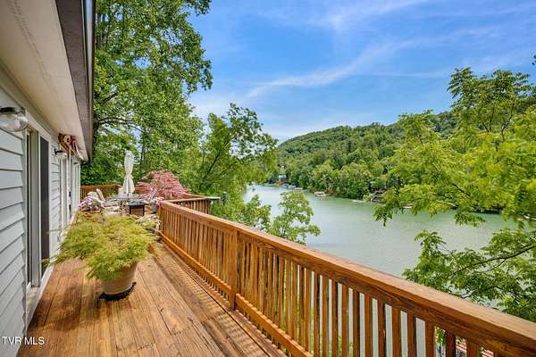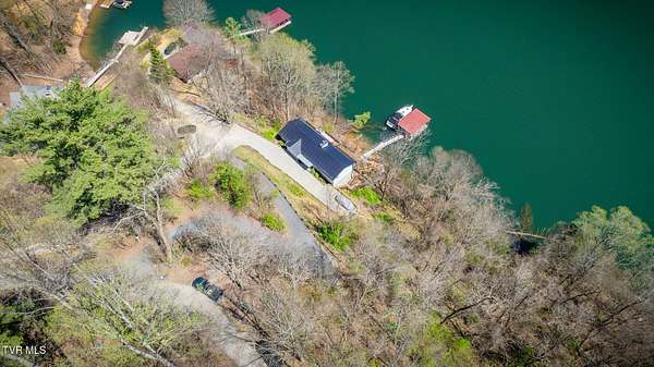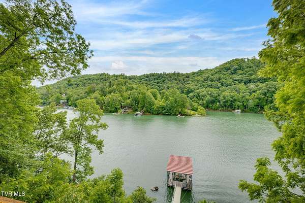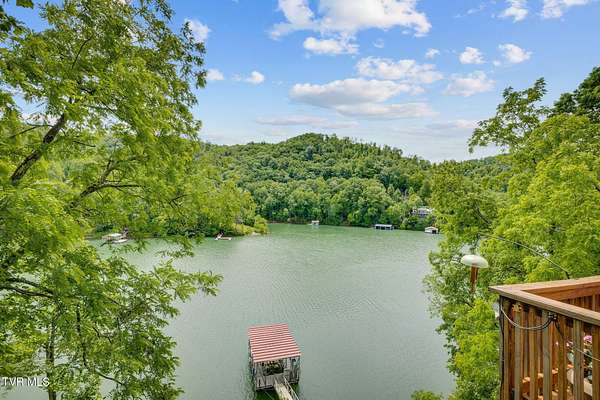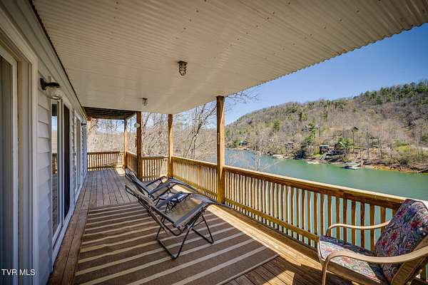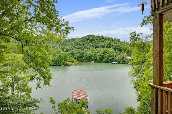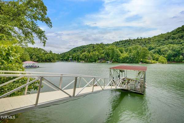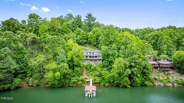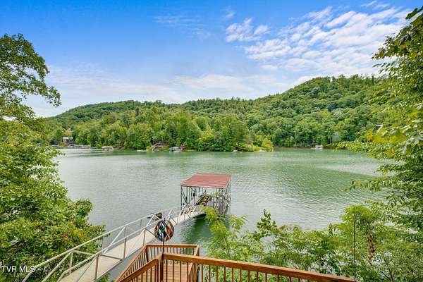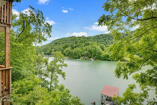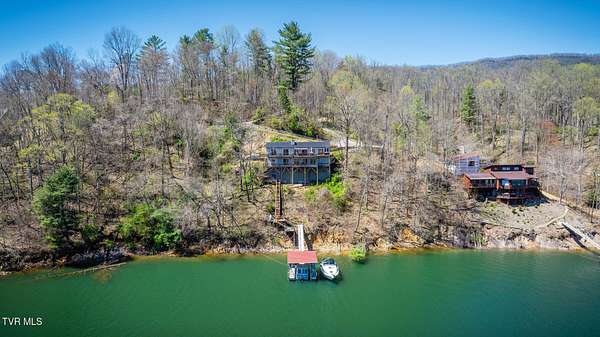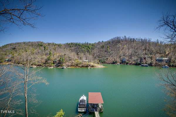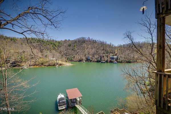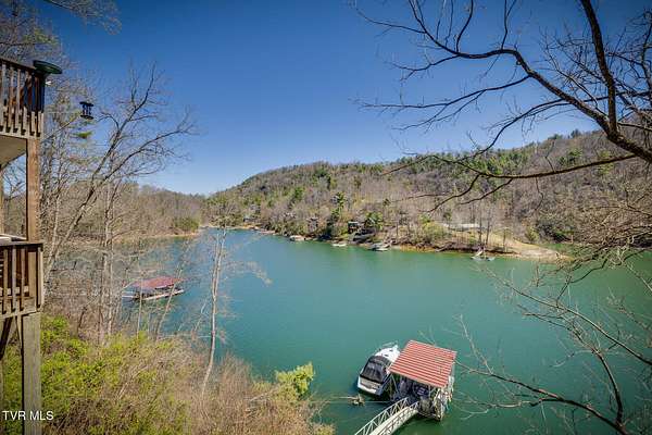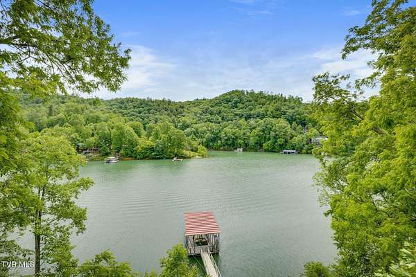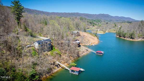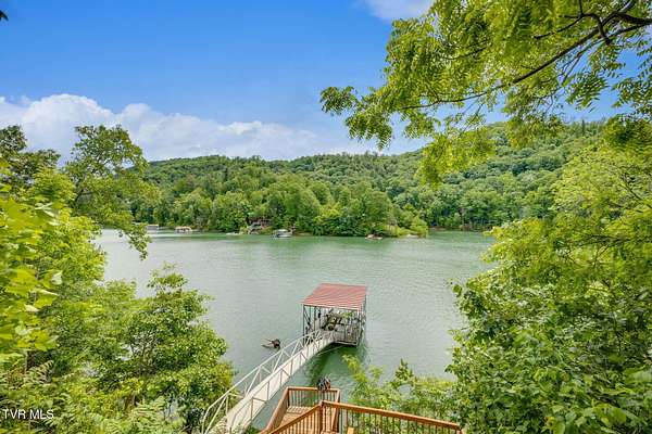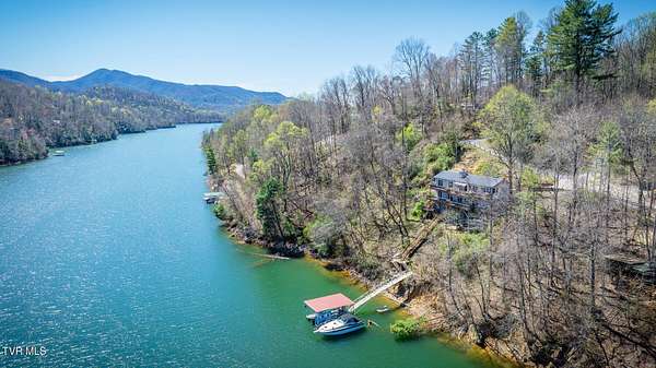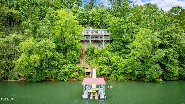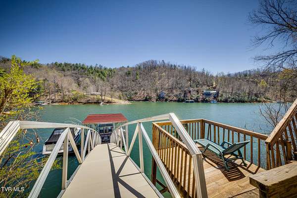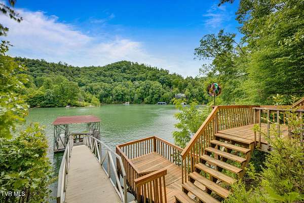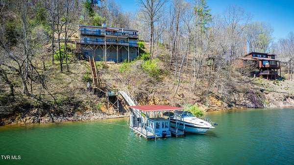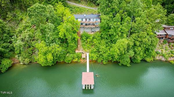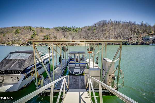 Welcome to 465 Big Oak Drive, a stunning lakefront retreat nestled on the pristine shores of Watauga Lake in Butler, Tennessee. This exceptional 4-bedroom, 2-bathroom home offers breathtaking panoramic lake and mountain views, with direct access to the water, making it a haven for nature lovers & water enthusiasts alike. Expansive decks on both levels invite you to immerse yourself in the tranquil beauty of Watauga Lake and the surrounding Appalachian Mountains. A pathway leads directly to your own private, deeded lake access & TVA-permitted dock, with covered steel roof, 60-foot bridge walkway, HydroHoist lift accommodating a 20-foot boat, clean water access, electrical hookups, including a shore power 30 amp receptacle and 110 power duplex receptacle. The main level features an open-concept design encompassing the living room, kitchen, and dining area, all centered around a cozy wood-burning fireplace. Floor-to-ceiling windows & multiple deck access points ensure that the breathtaking scenery is always within view. The spacious primary bedroom on this level offers dual direct deck access and is adjacent to a full bathroom equipped with a dual vanity & step-in shower. The lower level boasts additional living space with a kitchenette/wet bar, perfect for entertaining or accommodating guests. Three bedrooms, each with deck access, provide comfort and privacy. A second full bathroom & utility closet with washer/dryer hookups complete this level. Updates by the current owners include paved driveway, installation of the dock and walkway, a new roof & gutters, & various cosmetic enhancements. The dock is also permitted for expansion, should additional amenities be desired. *Please be advised that the driveway has a steep, sharp switchback and requires performing a 3-point turn to navigate. Large vehicles may be unable to maneuver and may utilize the parking area immediately past the driveway along the road for showings.