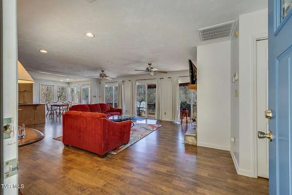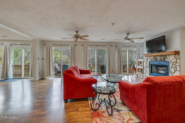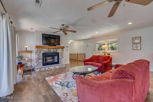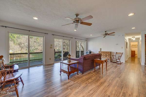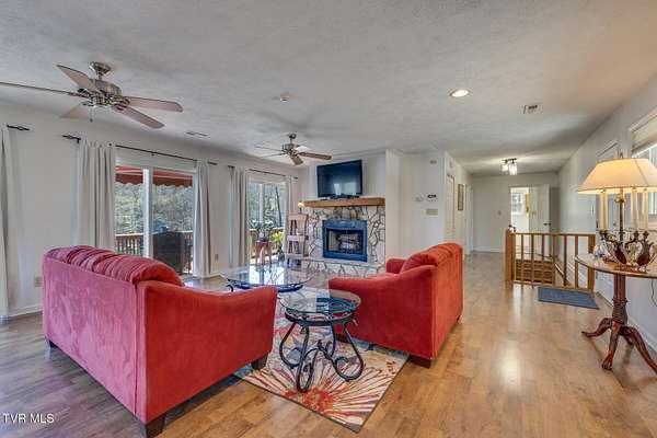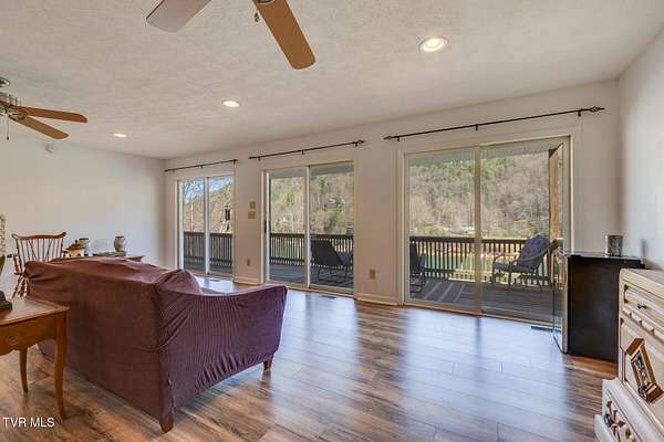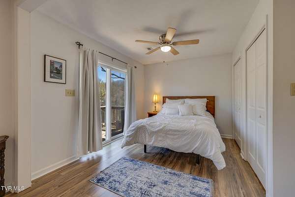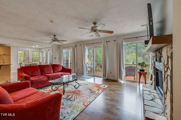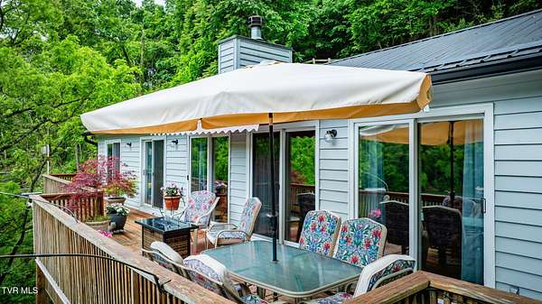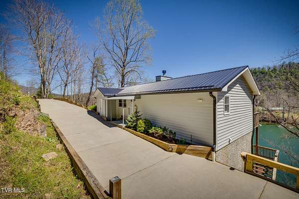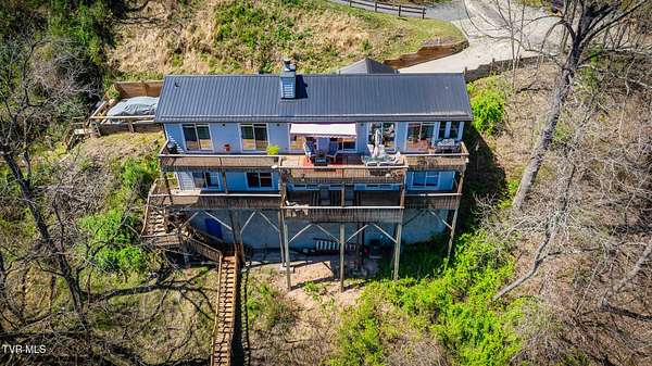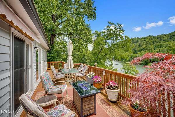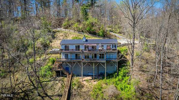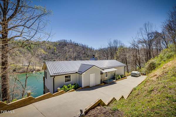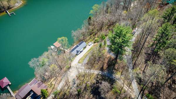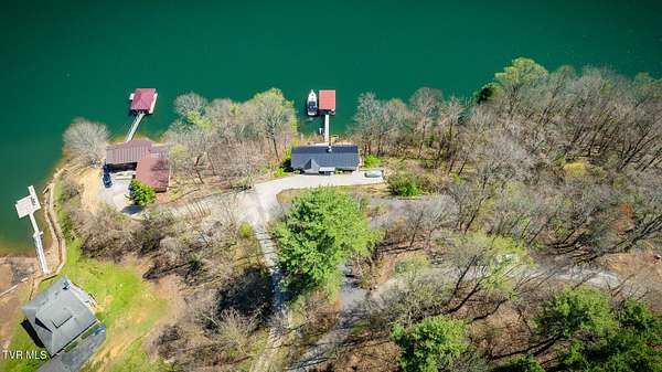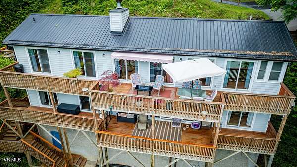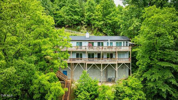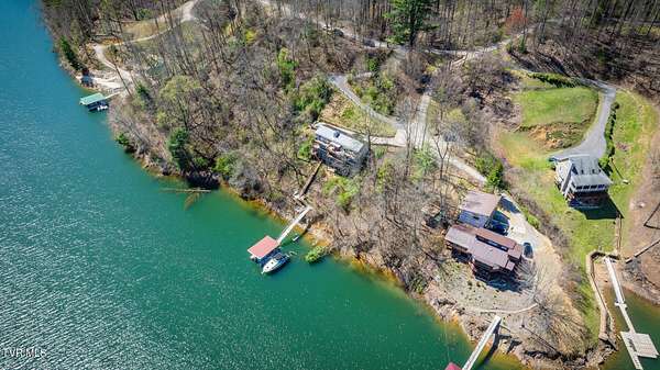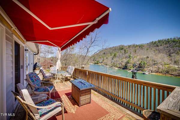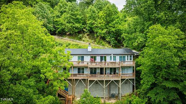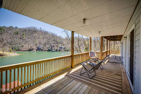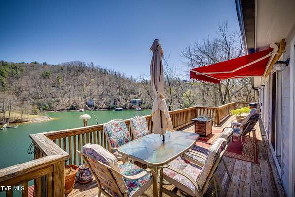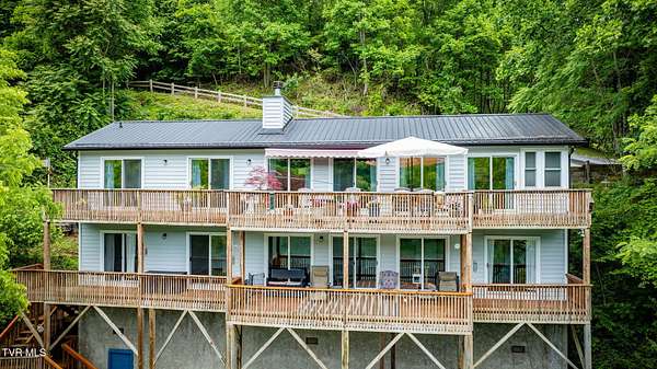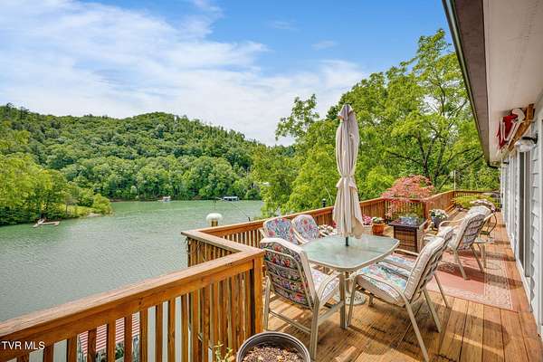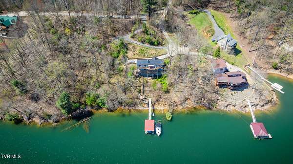 Welcome to 465 Big Oak Drive, a stunning lakefront retreat nestled on the pristine shores of Watauga Lake in Butler, Tennessee. This exceptional 4-bedroom, 2-bathroom home offers breathtaking panoramic lake and mountain views, with direct access to the water, making it a haven for nature lovers & water enthusiasts alike. Expansive decks on both levels invite you to immerse yourself in the tranquil beauty of Watauga Lake and the surrounding Appalachian Mountains. A pathway leads directly to your own private, deeded lake access & TVA-permitted dock, with covered steel roof, 60-foot bridge walkway, HydroHoist lift accommodating a 20-foot boat, clean water access, electrical hookups, including a shore power 30 amp receptacle and 110 power duplex receptacle. The main level features an open-concept design encompassing the living room, kitchen, and dining area, all centered around a cozy wood-burning fireplace. Floor-to-ceiling windows & multiple deck access points ensure that the breathtaking scenery is always within view. The spacious primary bedroom on this level offers dual direct deck access and is adjacent to a full bathroom equipped with a dual vanity & step-in shower. The lower level boasts additional living space with a kitchenette/wet bar, perfect for entertaining or accommodating guests. Three bedrooms, each with deck access, provide comfort and privacy. A second full bathroom & utility closet with washer/dryer hookups complete this level. Updates by the current owners include paved driveway, installation of the dock and walkway, a new roof & gutters, & various cosmetic enhancements. The dock is also permitted for expansion, should additional amenities be desired. *Please be advised that the driveway has a steep, sharp switchback and requires performing a 3-point turn to navigate. Large vehicles may be unable to maneuver and may utilize the parking area immediately past the driveway along the road for showings.