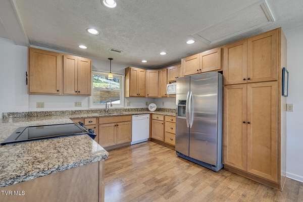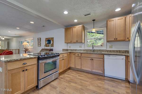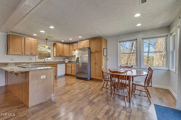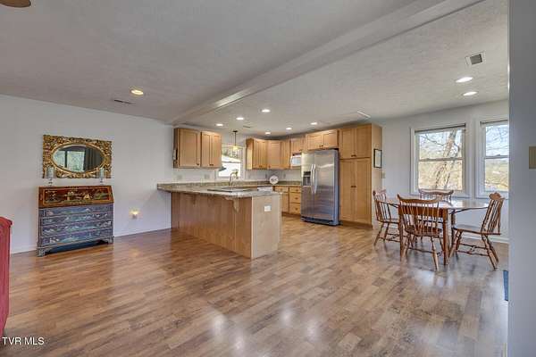 - Eat-In Kitchen, Granite Counters, Kitchen Island, Kitchen/Dining Combo, Open Floorplan, Wet Bar