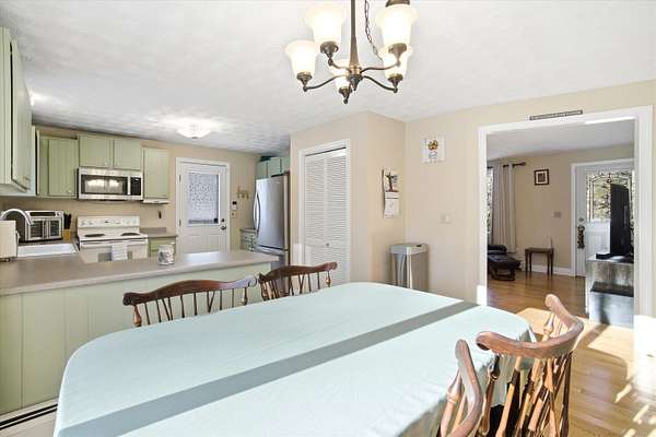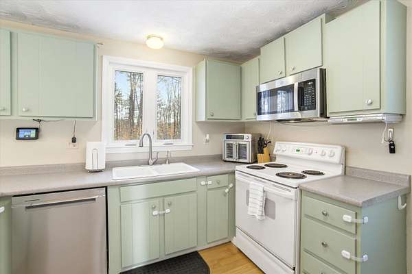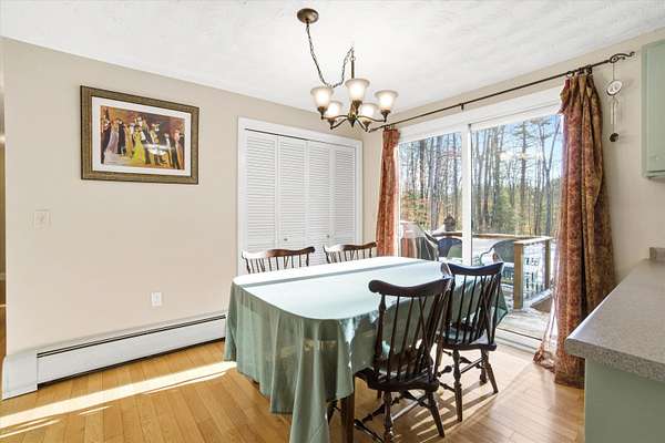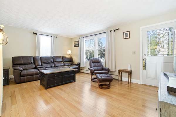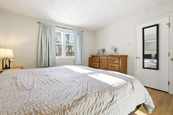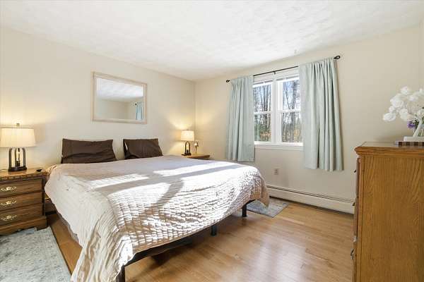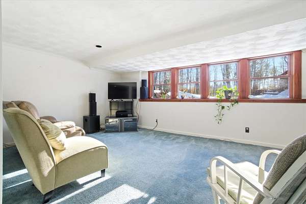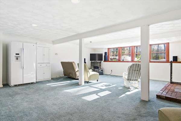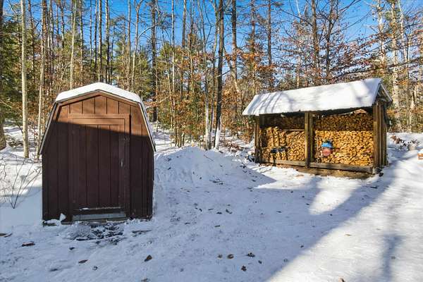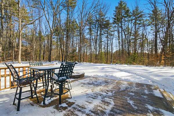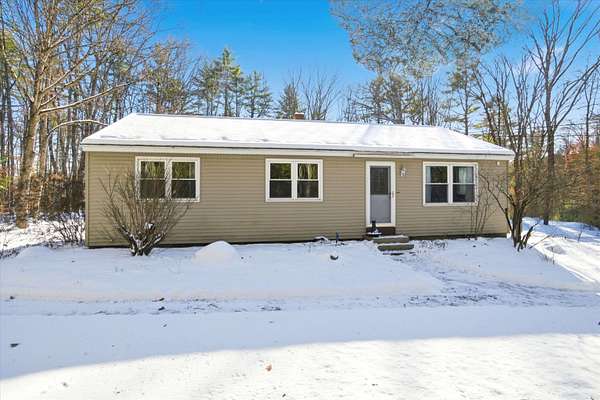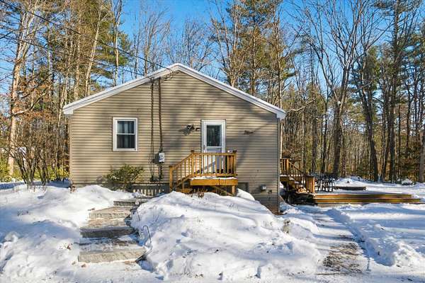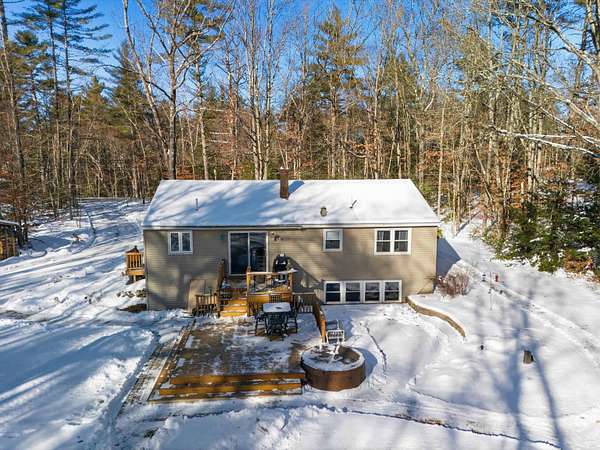 Set on 3.2 private acres surrounded by mature woods, this south facing ranch offers a peaceful setting with a thoughtful blend of indoor comfort and outdoor living. The property features a spacious multi-level deck overlooking the backyard, ideal for entertaining, relaxing, or enjoying the natural surroundings. A nearby hot tub area and fire pit space enhance the outdoor experience, while an oversized shed provides excellent storage or workshop potential. Inside, the main level is filled with natural light and showcases hardwood flooring throughout. The inviting living room offers a warm, comfortable gathering space, while the eat-in kitchen features ample cabinetry and direct access to the rear deck, perfect for seamless indoor-outdoor living. Three well-proportioned bedrooms and a full bath complete the main level. The finished lower level significantly expands the living space with a large family room highlighted by oversized windows and a brick hearth with a wood stove, creating a cozy retreat during cooler months. This level also offers additional finished space suitable for a home office, guest area, or hobby room, along with generous storage. Tucked away in a serene setting yet conveniently located just minutes from I-93, I-89, Concord Hospital, and downtown Concord, this home offers the rare combination of privacy, usable acreage, and accessibility, an ideal opportunity for those seeking both tranquility and convenience. Showings start at open house 12/20 10am Noon.
