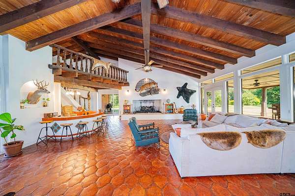 Est $5,494/mo- One of a kind Luxury Ranch on 50.48 Acres with Private 6 Acre Pond- Welcome to your own private paradise! Nestled on 50.48 acres of serene Texas countryside, this stunning 6000 square ft 4 bed 3 bath custom Ranch style home captures the rustic elegance of true ranch living. With handcrafted natural wood accents and imported tile floors, this one-of-a-kind property offers the perfect blend of comfort, charm, and outdoor beauty. The home is thoughtfully designed with rich wooden beams, custom finishes, and warm tones that bring character to every room. Walk into the grand living room to be greeted with vaulted ceilings and a huge fireplace. Upstairs, expansive porches are conveniently located off the master bedroom providing extraordinary views of the pond and surrounding property. Looking for more living area? There is a huge bonus room off the garage that would make a great mancave or mother-in-law suite. Outdoors, your personal retreat awaits. The large 6 acre pond is perfect for fishing or paddle boating, complete with a private boat dock for easy access and lakeside leisure. The acreage offers endless possibilities--whether you envision a hobby farm, equestrian pursuits, or simply enjoying the quiet tranquility of wide-open spaces. Enjoy gardening? You'll fall in love with the huge greenhouse and attached potting room. The courtyard features vibrant flowers and an unbelievable view of the pond. If you're seeking a unique home that combines traditional charm with natural beauty, this extraordinary ranch is a must-see. Come experience the unmatched peace, privacy, and character this property has to offer. It's conveniently located only about 2 hours from DFW and less than 1.5 hours to Tyler. Additional acreage available. This one won't last long so call today and schedule your private tour.