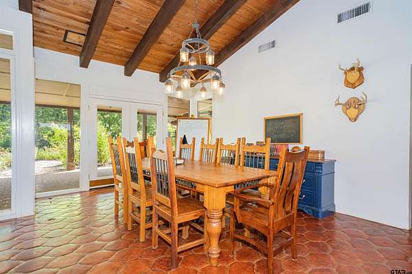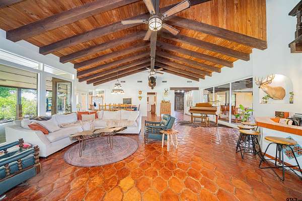 Est $4,759/mo- One of a kind Luxury Ranch on 50.48 Acres with Private 6 Acre Pond- Welcome to your own private paradise! Nestled on 50.48 acres of serene Texas countryside, this stunning 6000 square ft 4 bed 3 bath custom Ranch style home captures the rustic elegance of true ranch living. With handcrafted natural wood accents and imported tile floors, this one-of-a-kind property offers the perfect blend of comfort, charm, and outdoor beauty. The home is thoughtfully designed with rich wooden beams, custom finishes, and warm tones that bring character to every room. Walk into the grand living room to be greeted with vaulted ceilings and a huge fireplace. Upstairs, expansive porches are conveniently located off the master bedroom providing extraordinary views of the pond and surrounding property. Looking for more living area? There is a huge bonus room off the garage that would make a great mancave or mother-in-law suite. Outdoors, your personal retreat awaits. The large 6 acre pond is perfect for fishing or paddle boating, complete with a private boat dock for easy access and lakeside leisure. The acreage offers endless possibilities--whether you envision a hobby farm, equestrian pursuits, or simply enjoying the quiet tranquility of wide-open spaces. Enjoy gardening? You'll fall in love with the huge greenhouse and attached potting room. The courtyard features vibrant flowers and an unbelievable view of the pond. If you're seeking a unique home that combines traditional charm with natural beauty, this extraordinary ranch is a must-see. Come experience the unmatched peace, privacy, and character this property has to offer. It's conveniently located only about 2 hours from DFW and less than 1.5 hours to Tyler. Additional acreage available. This one won't last long so call today and schedule your private tour.