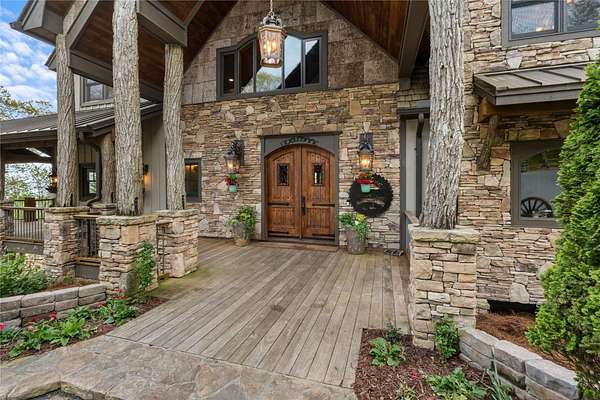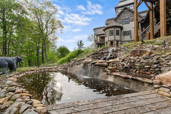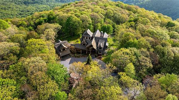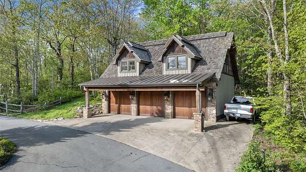 This magnificent estate property, situated at approximately 4,300 feet of elevation, epitomizes luxurious mountain living. It offers breathtaking panoramic views of Chimneytop and Whiteside Mountains, with sightlines stretching all the way to Clemson, South Carolina. Imagine relaxing with family or friends beside a roaring fire in this idyllic setting, or enjoying the stunning scenery from multiple seating areas on the expansive Ipe decks. The property spans over eight acres, providing ample space to explore. A tranquil water feature, complete with a life-sized bear sculpture, adds a unique charm, complemented by a nearby firepit for cozy gatherings. As the cool evening breezes settle in, retreat inside to the gourmet kitchen, thoughtfully designed to accommodate multiple chefs, with upscale appliances that will delight them. The open-concept layout is perfect for entertaining, with seamless transitions to a spacious lower level. Here, you'll find a full wet bar, a media room, a comfortable sitting area, and additional space for recreation. For vehicle and gear storage, the property includes two separate garages, ensuring ample room for all your needs. Guests will also appreciate the plentiful parking options. Above the 2-car garage is a cozy suite able to accommodate a small family or group of friends that may desire more privacy. Falcon Ridge offers a community pavilion where you may have larger gatherings and 3 acres of play space for children and pets, with extra parking.