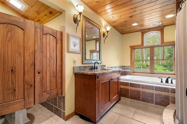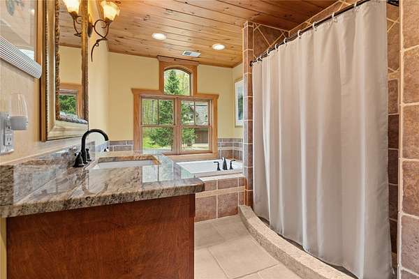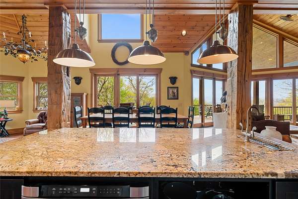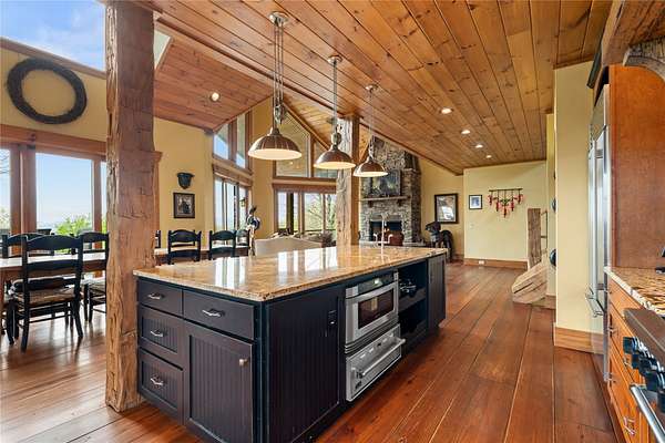 - Bar, Beamed Ceilings, Breakfast Bar, Built In Features, Cathedral Ceilings, Ceiling Fans, Double Vanity, Eat In Kitchen, Entrance Foyer, Granite Counters, High Ceilings, High Speed Internet, Kitchen Island, Natural Woodwork, Open Floorplan, Pantry, Soaking Tub, Walk In Closets, Wet Bar, Wired For Data, Wired For Sound