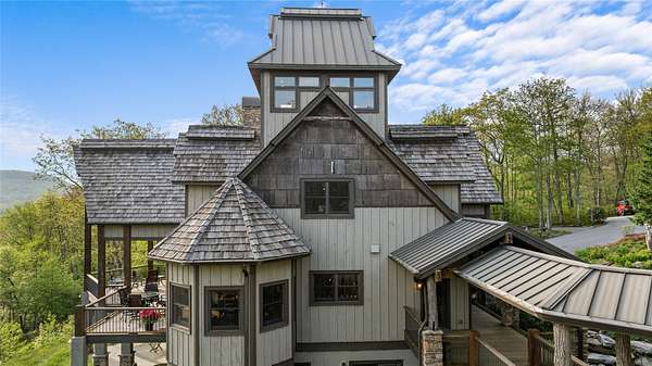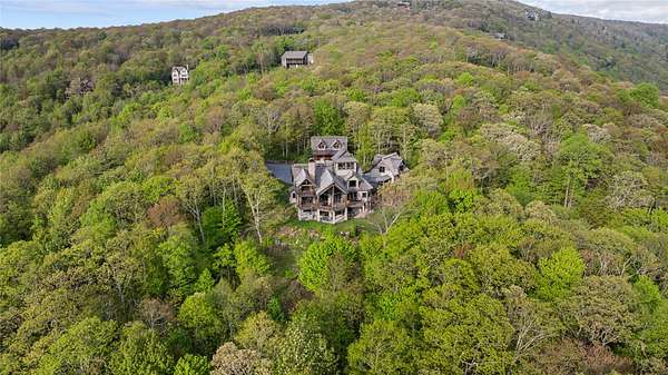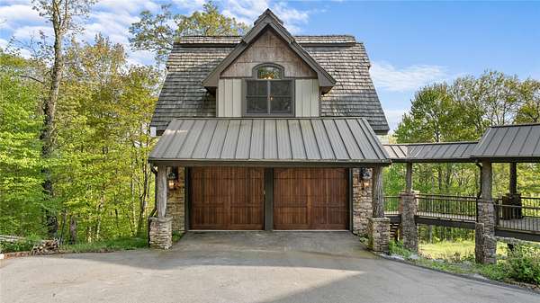 This magnificent estate property, situated at approximately 4,300 feet of elevation, epitomizes luxurious mountain living. It offers breathtaking panoramic views of Chimneytop and Whiteside Mountains, with sightlines stretching all the way to Clemson, South Carolina. Imagine relaxing with family or friends beside a roaring fire in this idyllic setting, or enjoying the stunning scenery from multiple seating areas on the expansive Ipe decks. The property spans over eight acres, providing ample space to explore. A tranquil water feature, complete with a life-sized bear sculpture, adds a unique charm, complemented by a nearby firepit for cozy gatherings. As the cool evening breezes settle in, retreat inside to the gourmet kitchen, thoughtfully designed to accommodate multiple chefs, with upscale appliances that will delight them. The open-concept layout is perfect for entertaining, with seamless transitions to a spacious lower level. Here, you'll find a full wet bar, a media room, a comfortable sitting area, and additional space for recreation. For vehicle and gear storage, the property includes two separate garages, ensuring ample room for all your needs. Guests will also appreciate the plentiful parking options. Above the 2-car garage is a cozy suite able to accommodate a small family or group of friends that may desire more privacy. Falcon Ridge offers a community pavilion where you may have larger gatherings and 3 acres of play space for children and pets, with extra parking. In addition, the sale of this property includes a membership in the Sapphire Master Association, allowing all sorts of activities and amenities at the Sapphire Valley Resort.