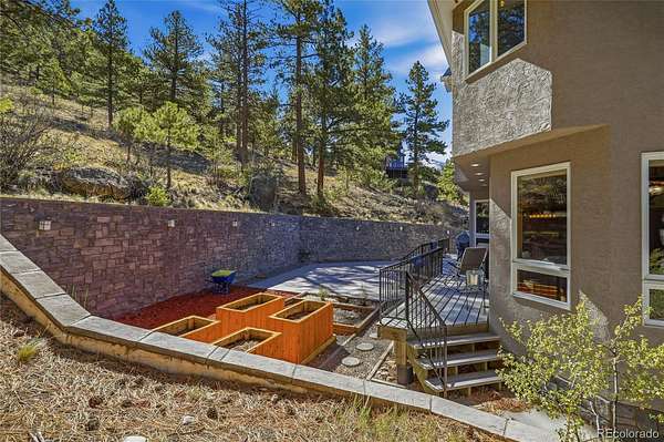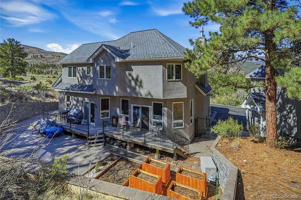 Outdoor living is just as functional, with a back deck that includes a concrete patio area and four planter boxes—ideal for enjoying the mountain setting, gardening, or relaxing outdoors.