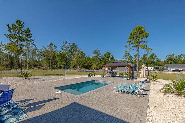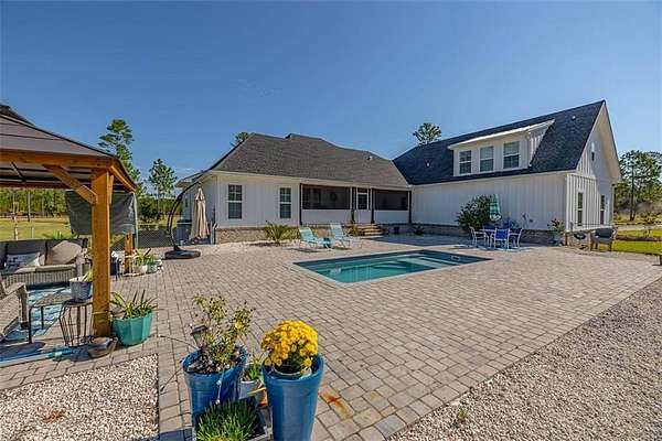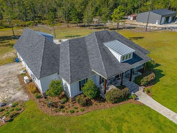 Welcome to 465 Old Brookman Rd - a stunning private estate, custom-built by it's one owner. This Low Country residence is situated on 4.5 private, gated acres offering immense land to expand or explore! This 3,855 sq. ft. residence offers 5 spacious bedrooms, 3.5 baths, and an inviting floor plan that perfectly balances elegance and livability. The main features a foyer that is open to the formal dining, great room, and chef's kitchen with beautiful quartz and custom cabinetry. The main also features 4 bedrooms with 3 full baths and a half bath, including a relaxing screen porch over looking the pool. Upstairs is a large bonus, or office, which would make for a 5th bedroom en suite with full bath! Inside, you'll find luxury vinyl flooring throughout, detailed crown molding, recessed lighting, & quartz counter tops and many more upgrades. Exterior features include a sparkling saltwater pool, huge paver patio, and expansive grounds that provide plenty of space for RVs, boats, and extra parking, even space for a storage adding convenience, while the gated entrance ensures peace and seclusion. With no HOA, you'll enjoy the freedom to truly make this property your own. Built for modern living, this home is equipped with a powerful 26kW generator, a Carrier 20.5 SEER communication HVAC system, and (2) 50-gallon Bradford White water heaters for efficiency and reliability. With timeless Low Country charm, privacy, and every thoughtful upgrade, 465 Old Brook Rd offers the best of both luxury and lifestyle.